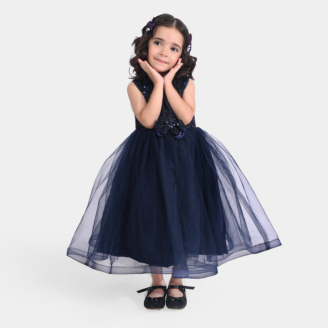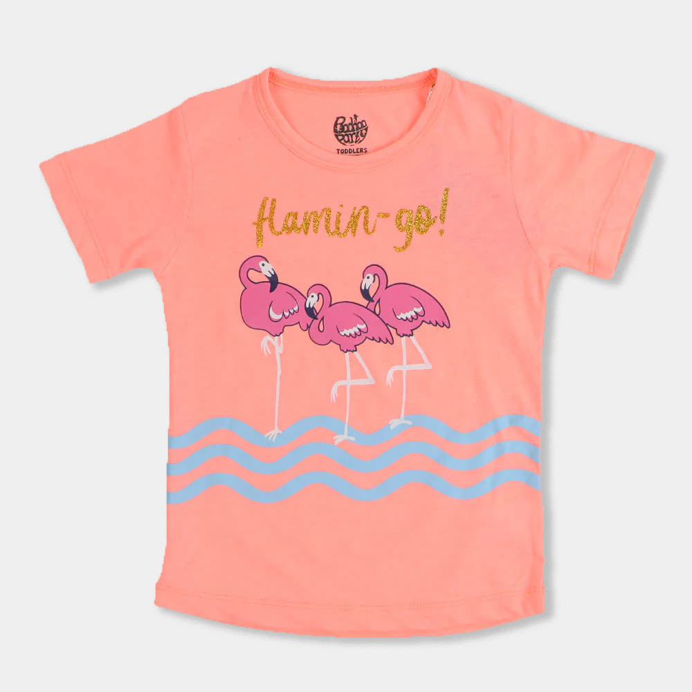 Girls Cotton Jersey T-Shirt H/S Flowers-Navy Blue