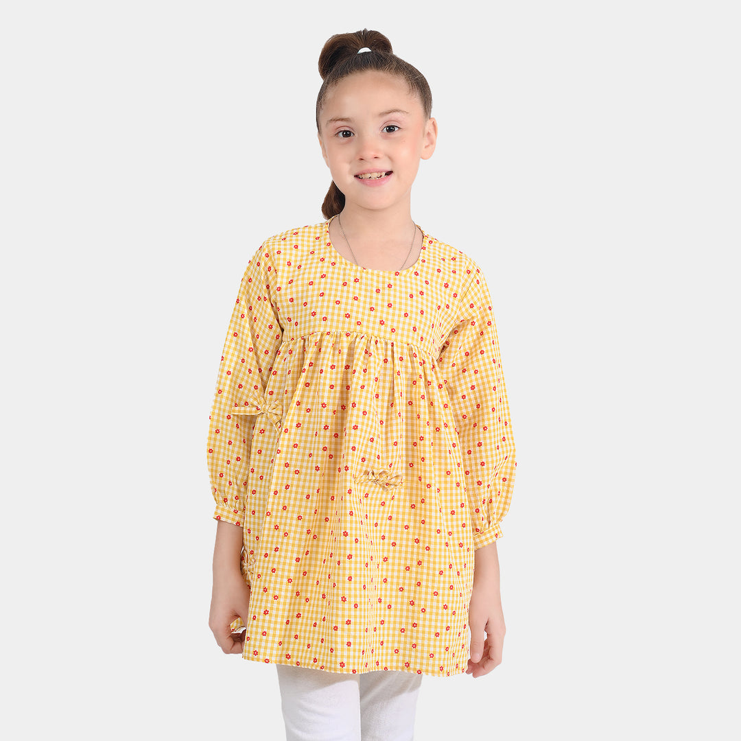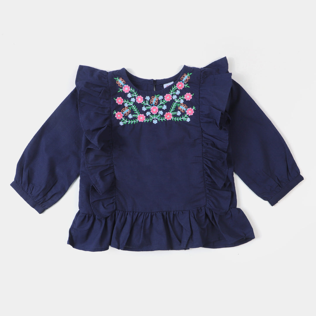 Infant Girls Cotton Poplin Emb kurti Hope-Pink