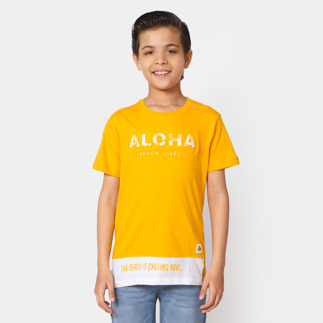 Boys Jumbo Pique T-Shirt H/S Let's Play Football-Citrus