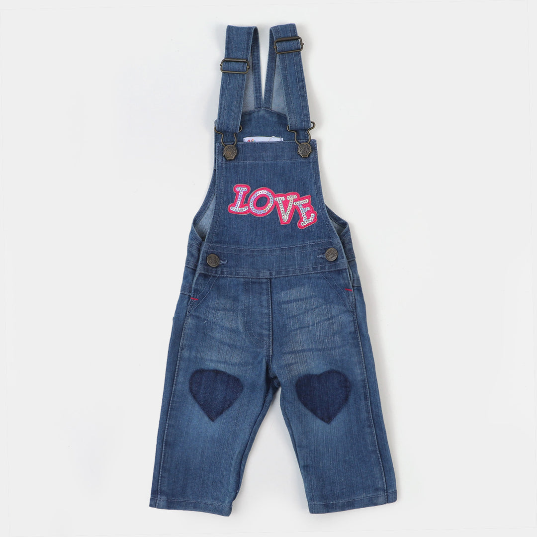 Infant Girls Denim Over All Love Dungaree - Ice Blue
