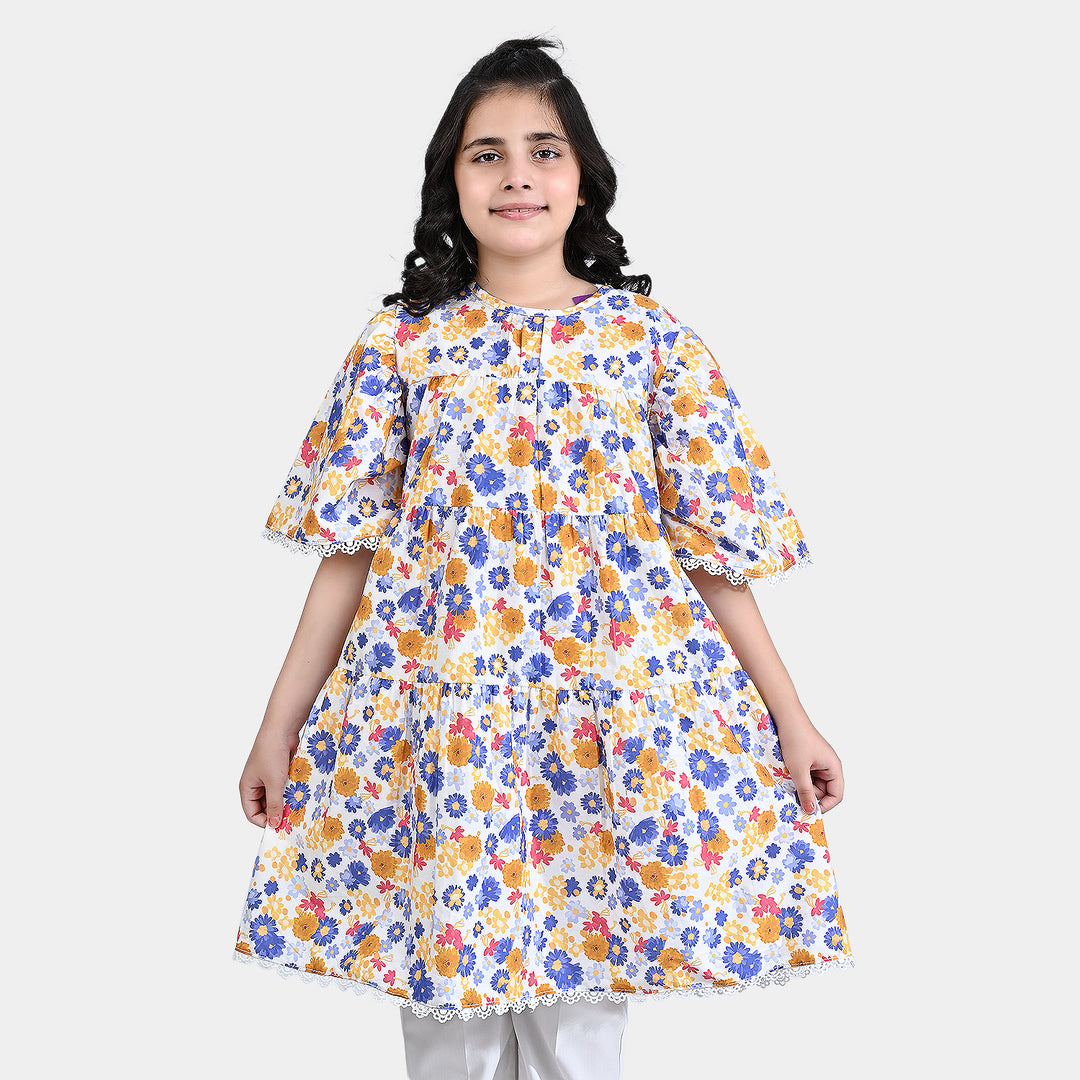 Girls Cotton Poplin Casual Frock Blue Daisy-Multi
