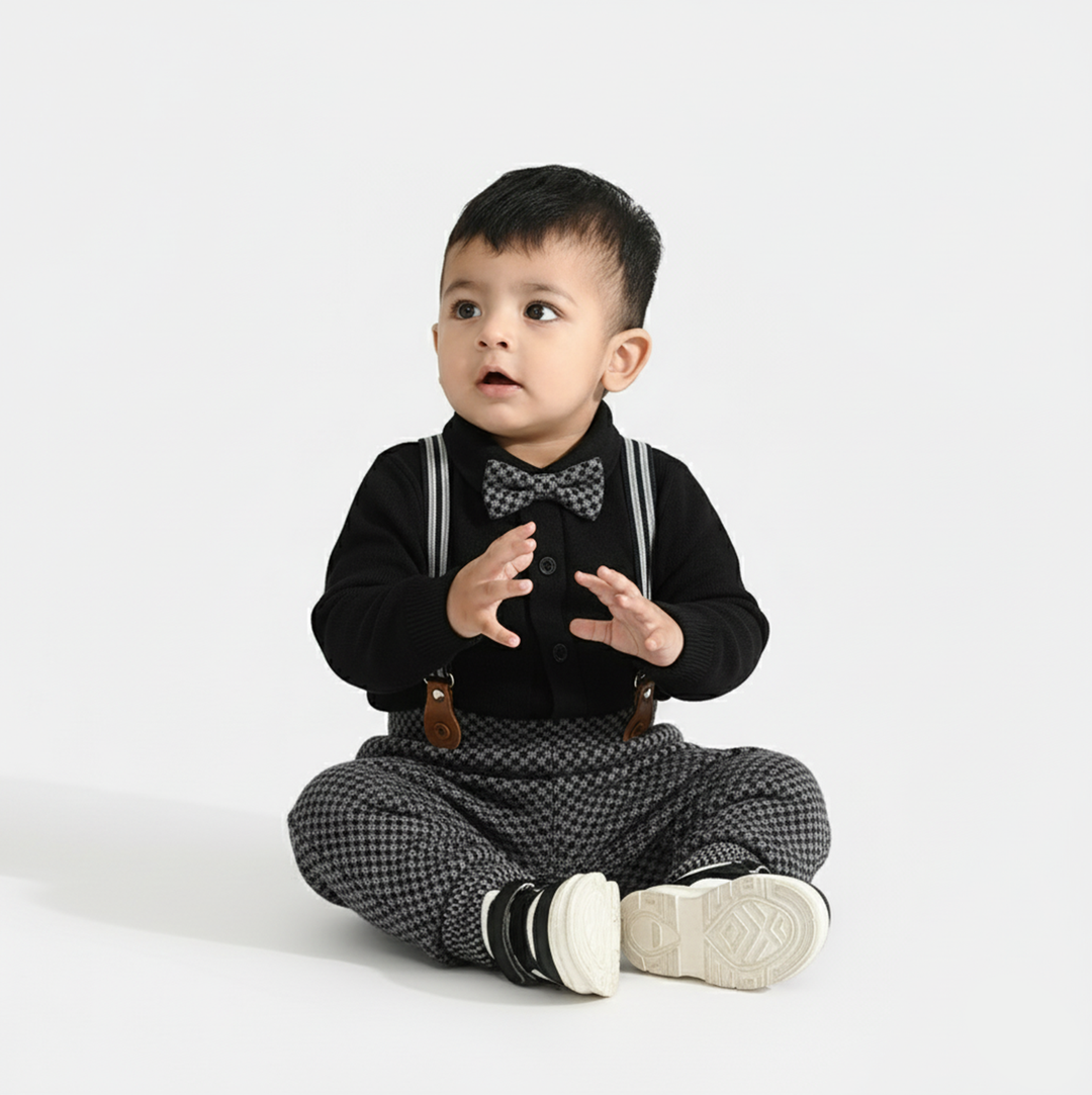 Boys Poly Viscose Waistcoat (Jamawar Black)-BLACK