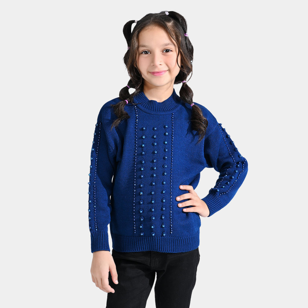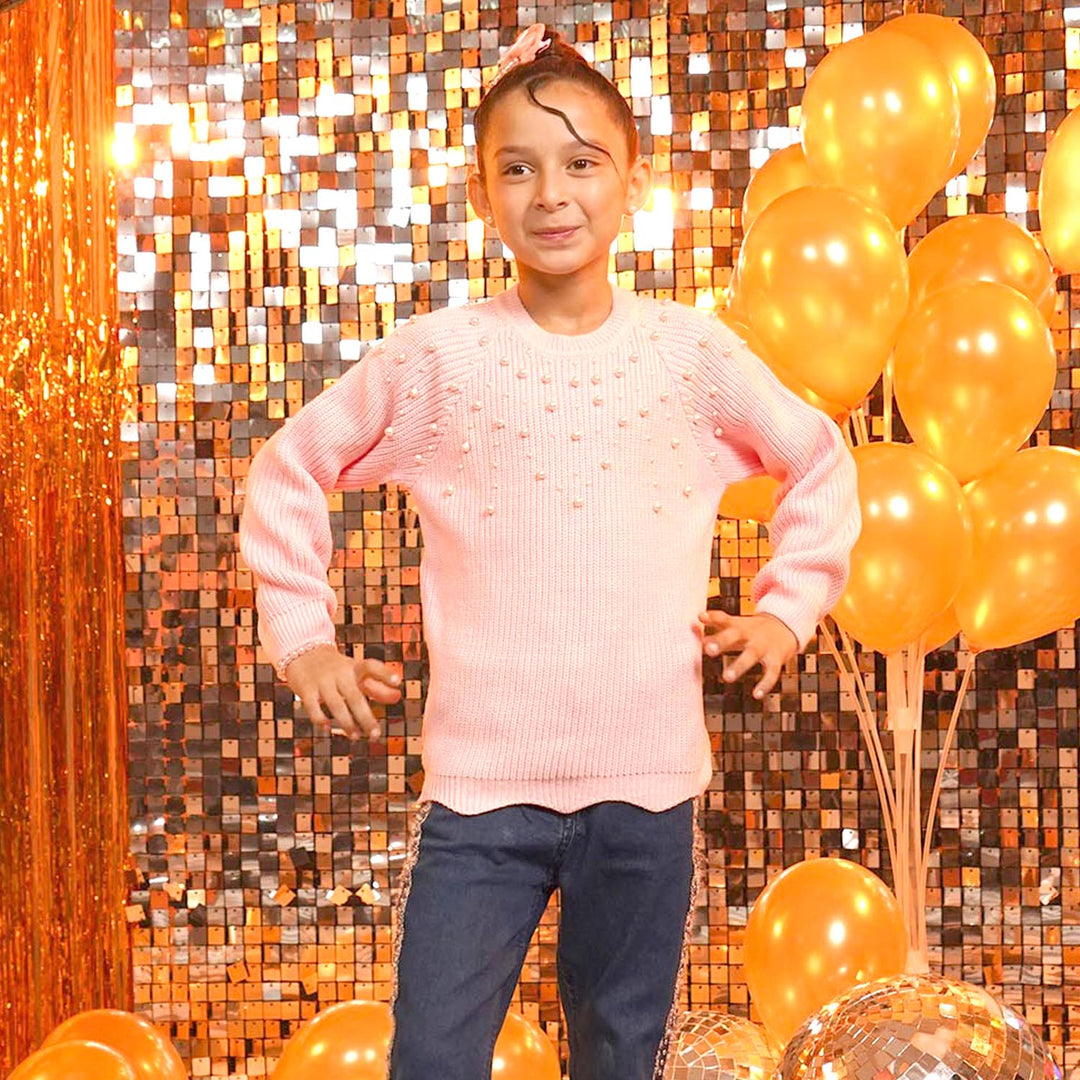 Girls Acrylic Sweater Akoya Pearls-Baby Pink