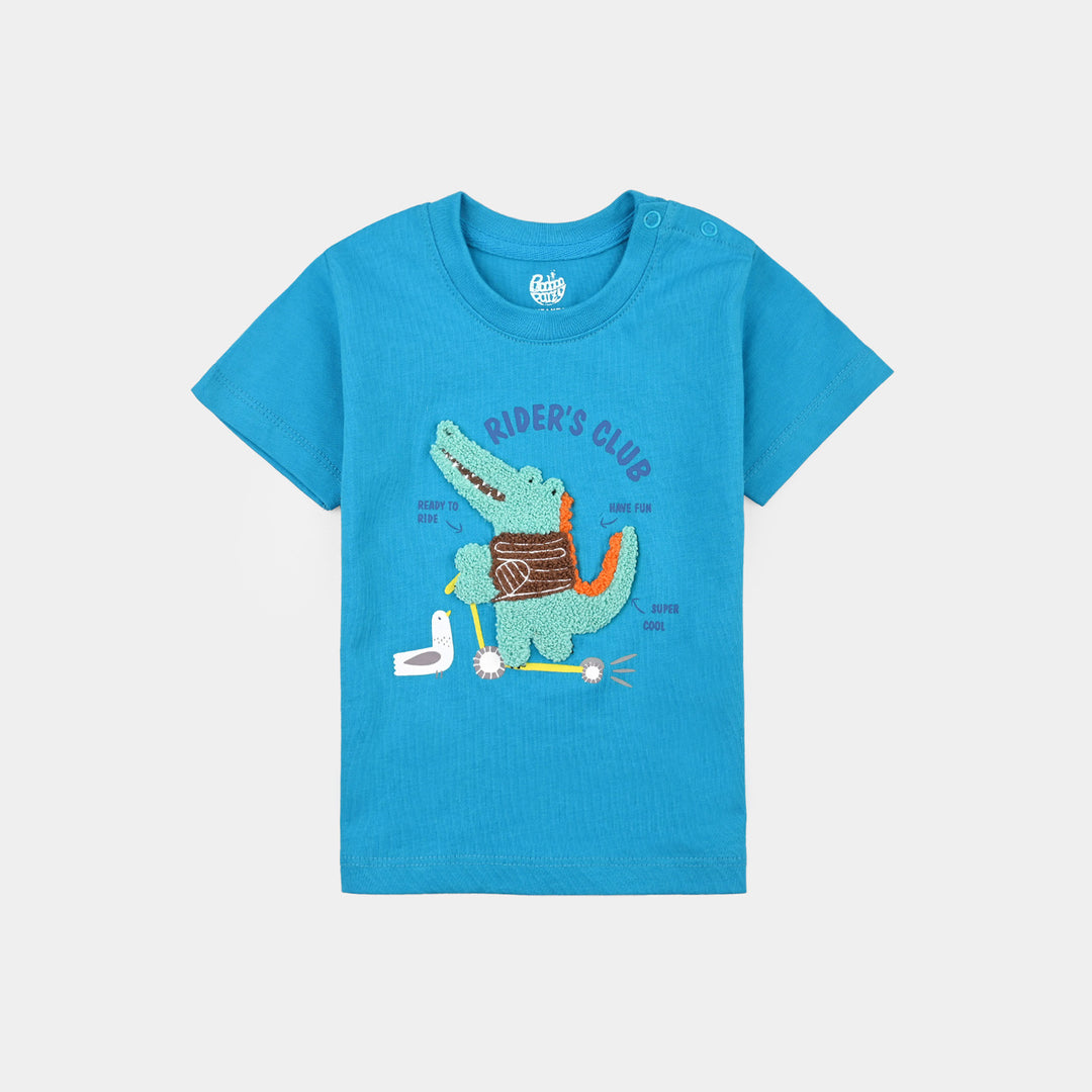 Infant Boys Yarn Dyed Round Neck T-Shirt TRACTOR-Red