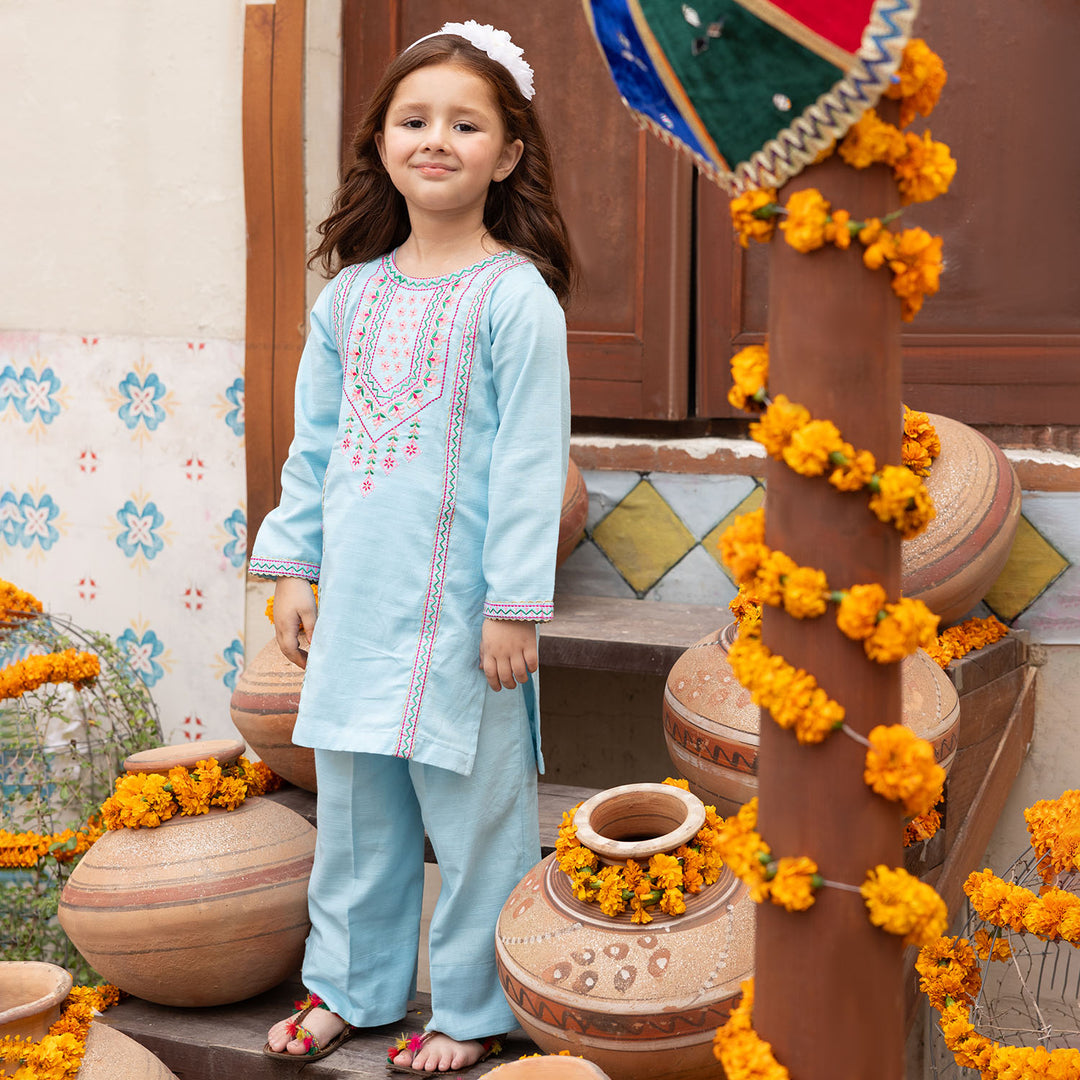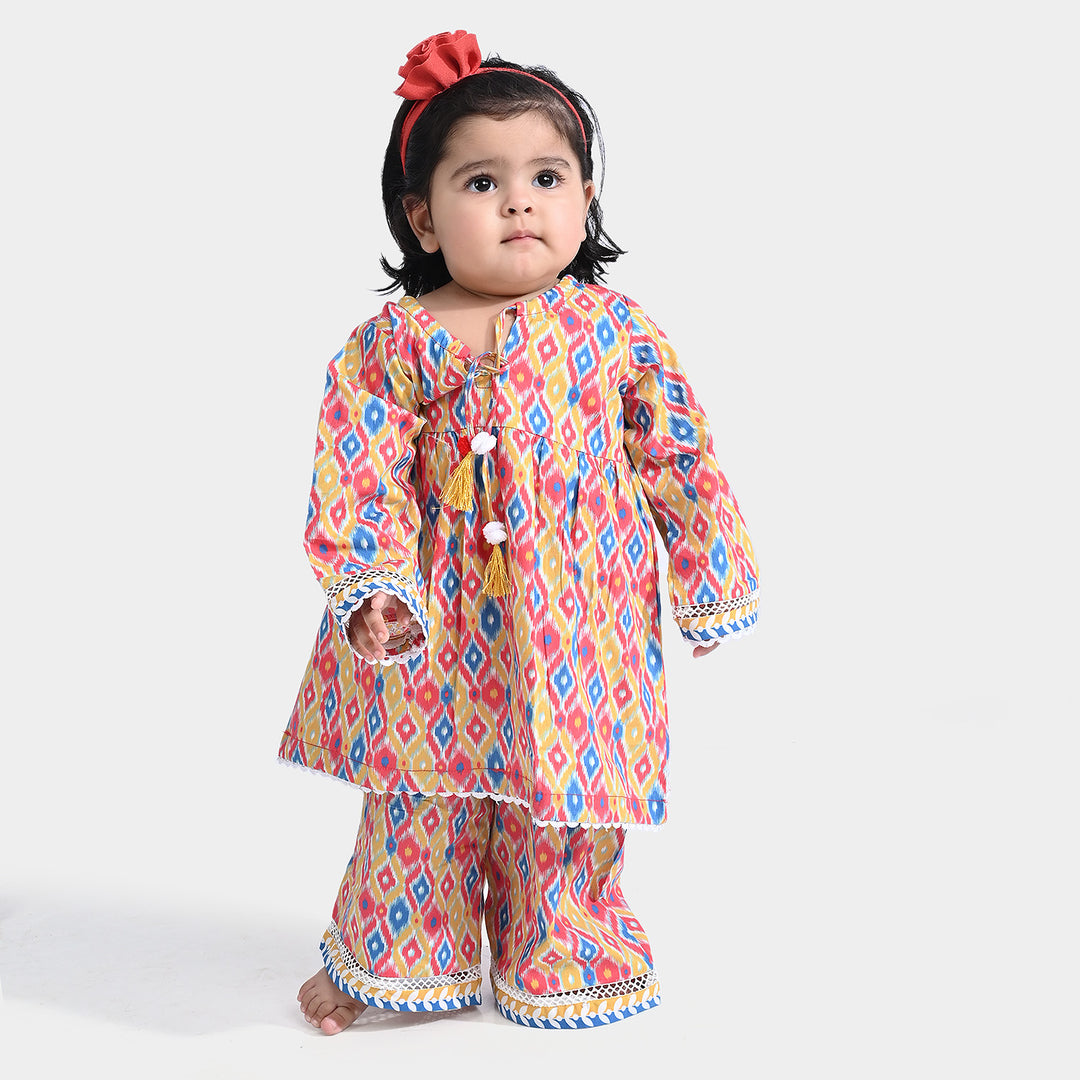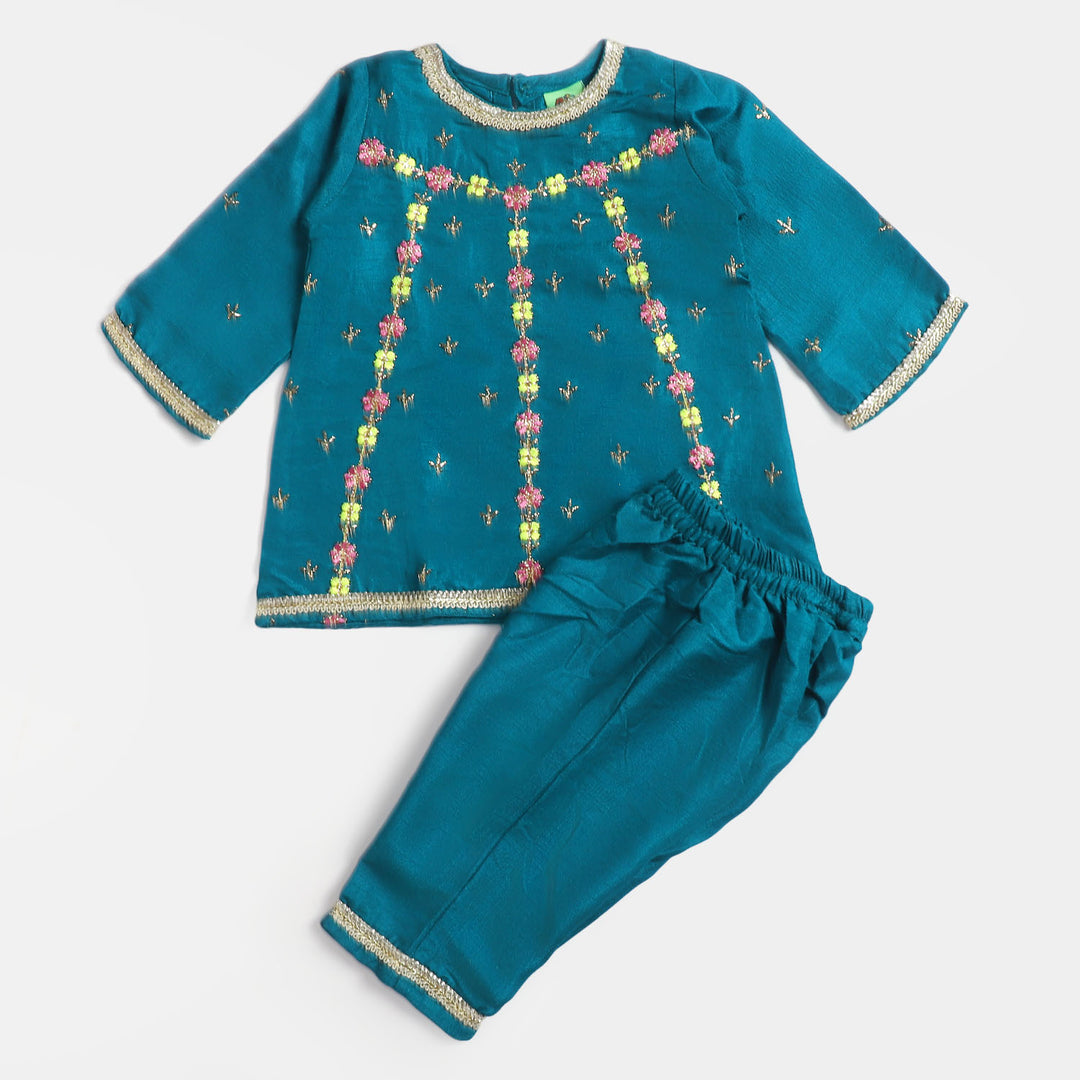Infant Girls Silk 2PC Suit Phool Pari-Sea Green