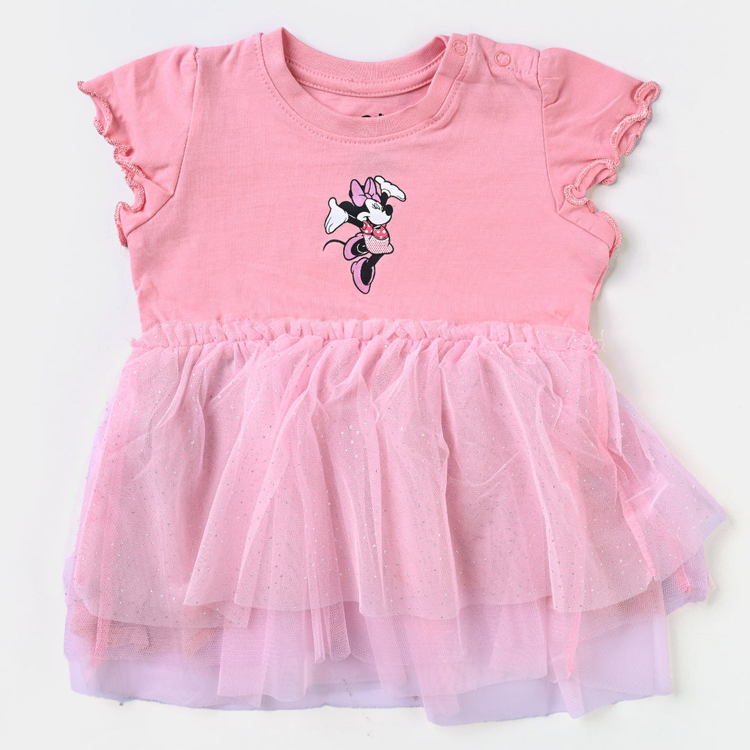 Infant Girls Cotton Terry Knitted Frock Character-Printed
