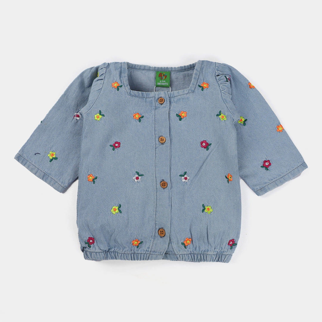 Girls Pant Denim Paper Bag With A-Belt - LIGHT BLUE