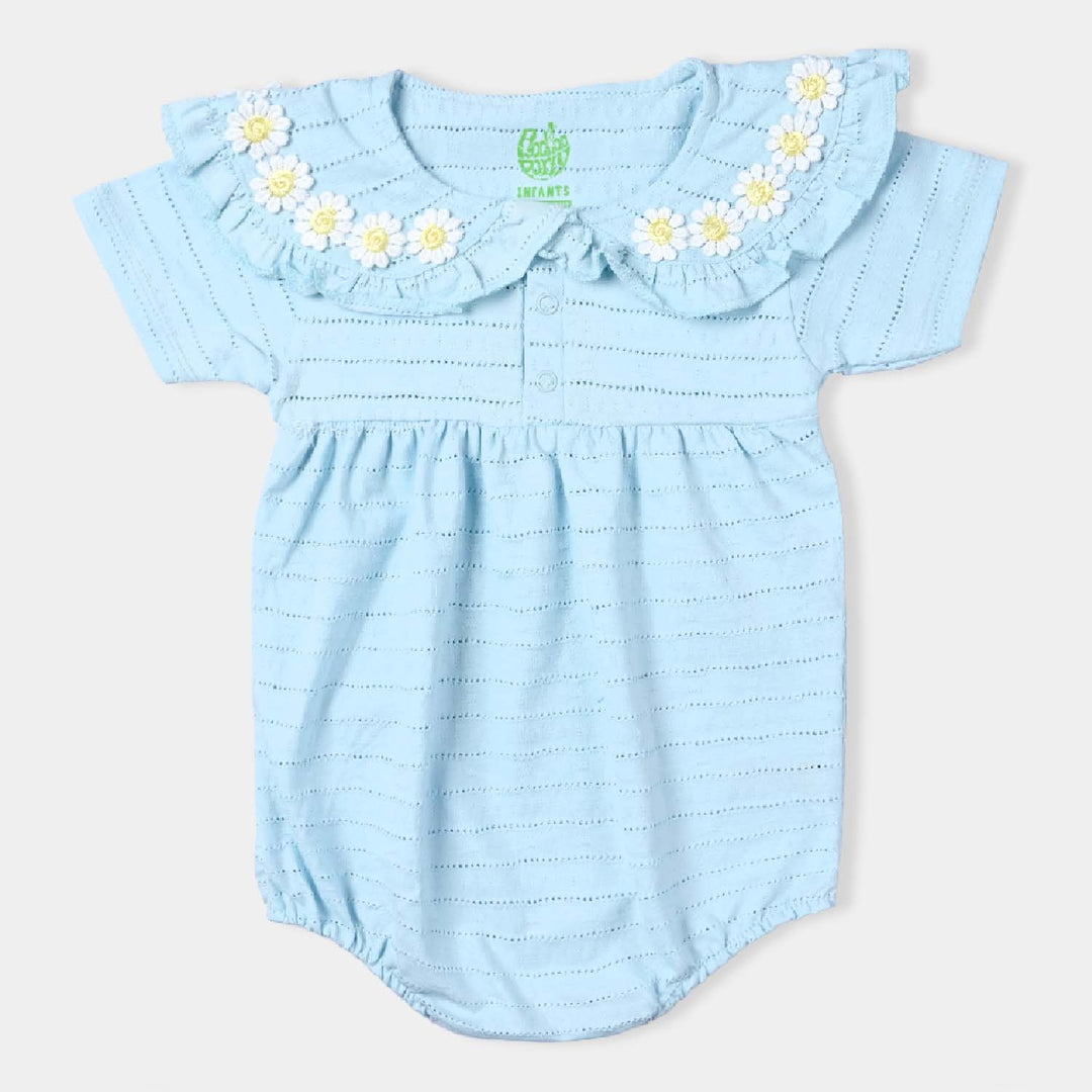 Infant Girls Jacquard Knitted Romper Rubber Badge-SKY BLUE