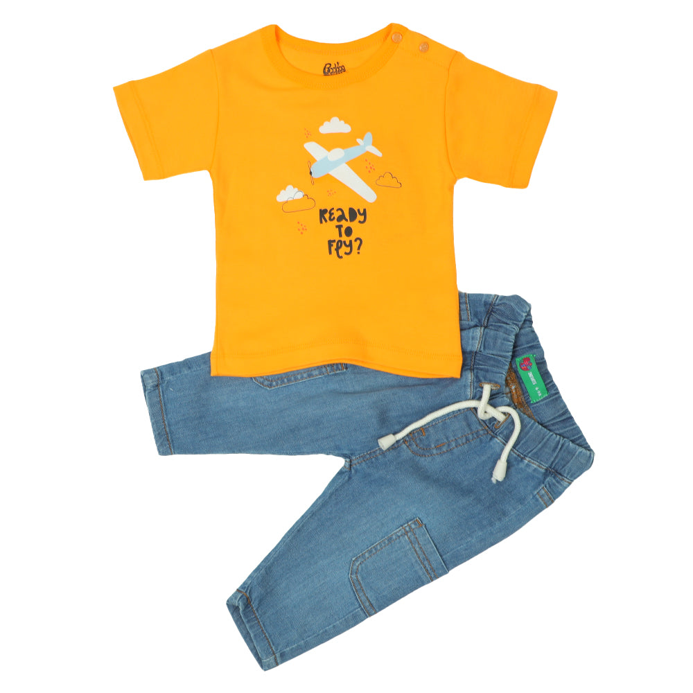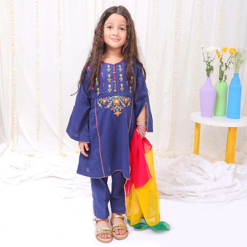 Infant Girls Woven Suit Denim Texture Flower - Blue