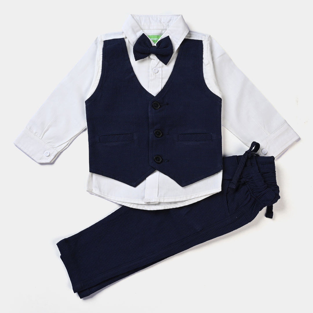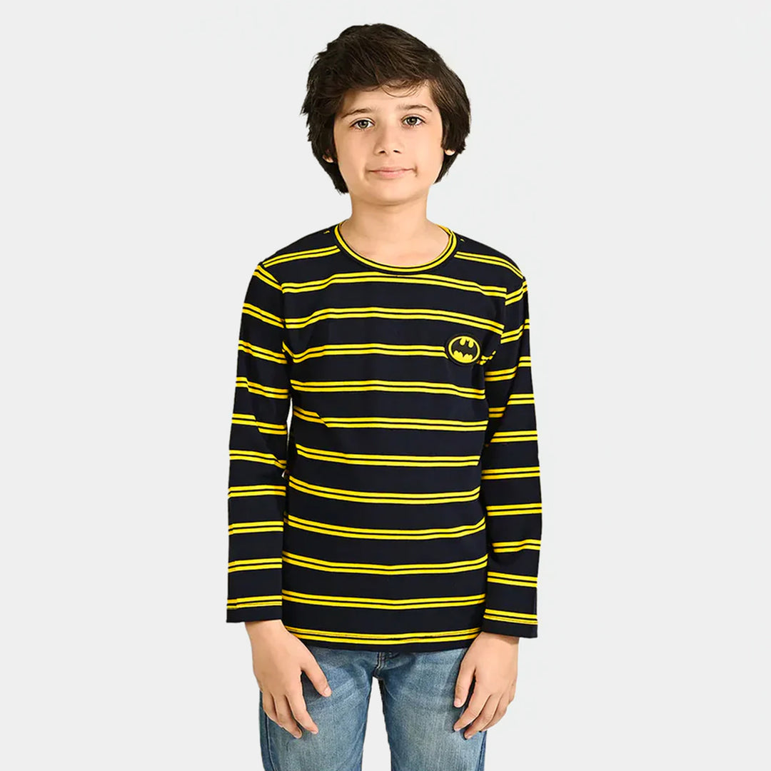 Boys Yarn Dyed T-Shirt H/S Follow The Wave-NAVY