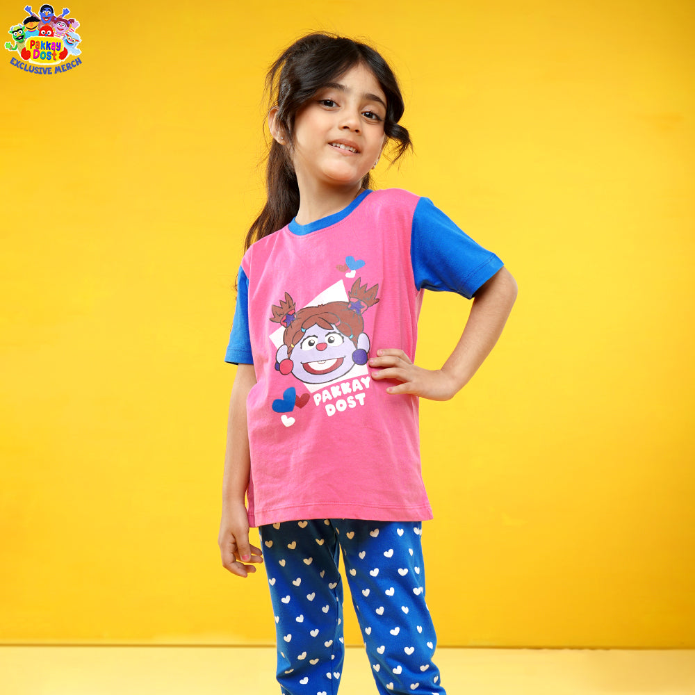 Girls Cotton Jersey 2 PCs Suit Pakkay Dost Miraal -Pink