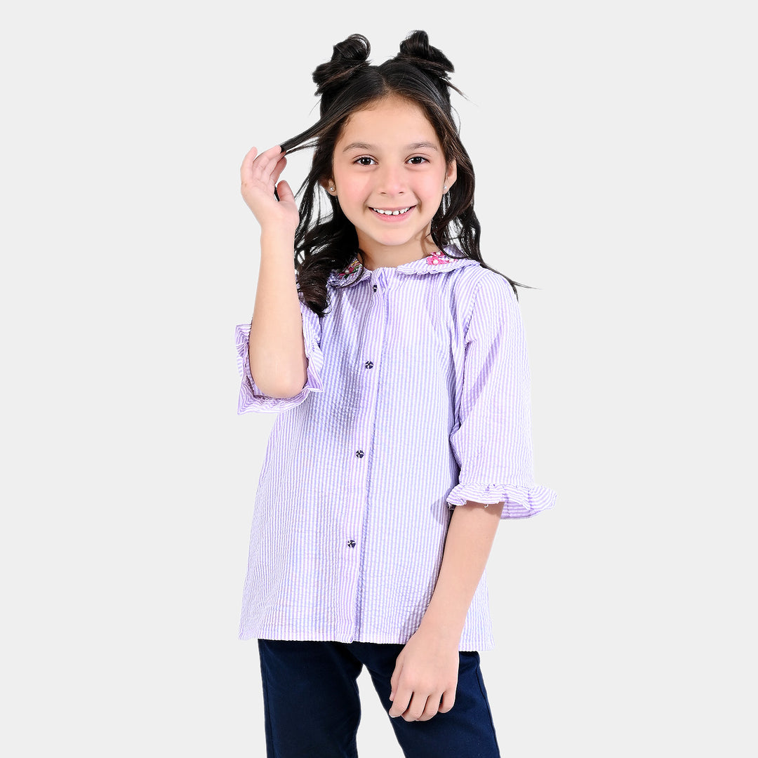 Girls Poly Cotton EMB Top Floral Fantasy-Lavender