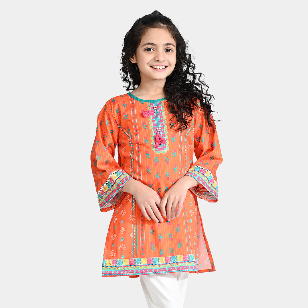 Girls Cotton Poplin Printed Kurti Pink Tulip-ORANGE