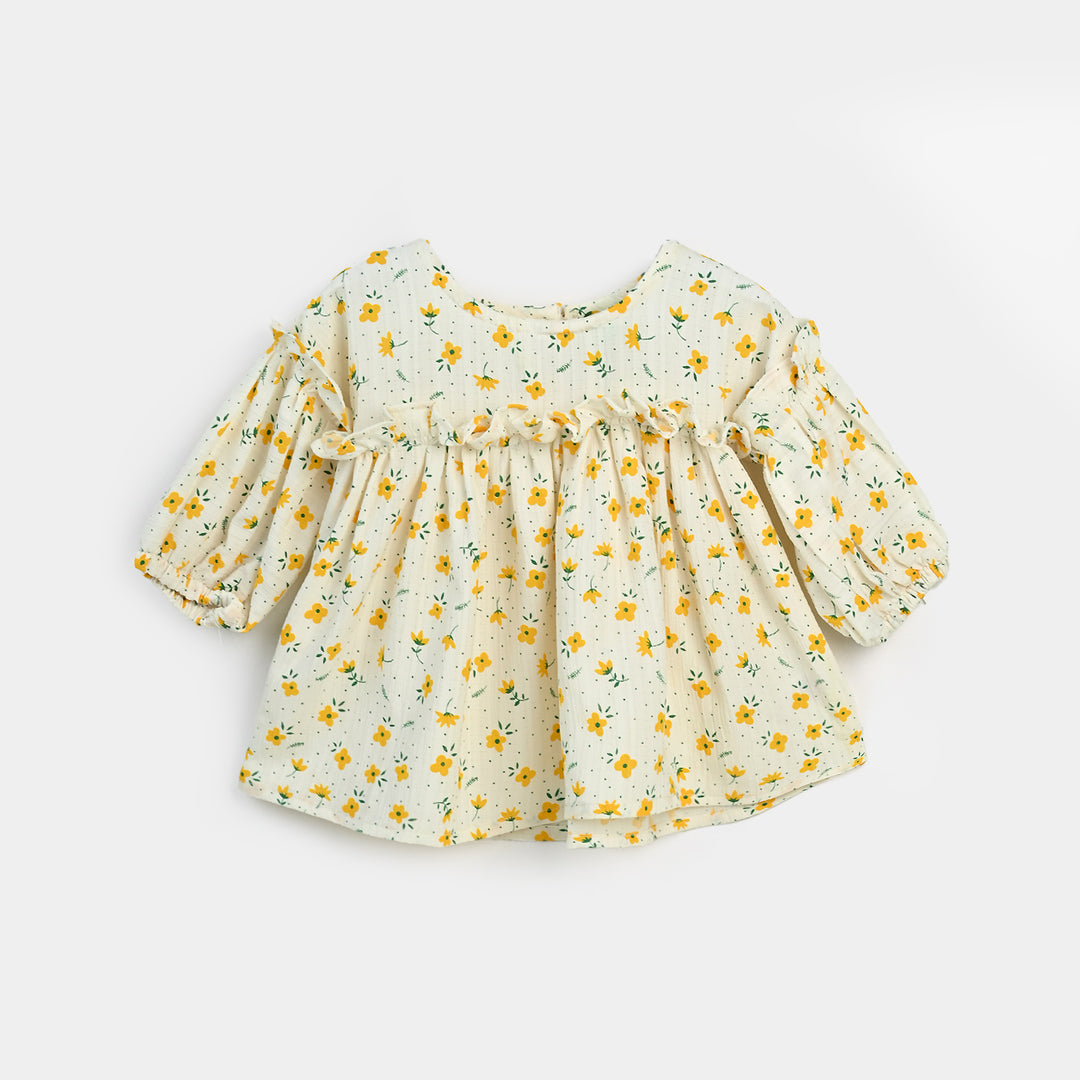 Infant Girls Poly Cotton Casual Frock Ruffled-OFF-White