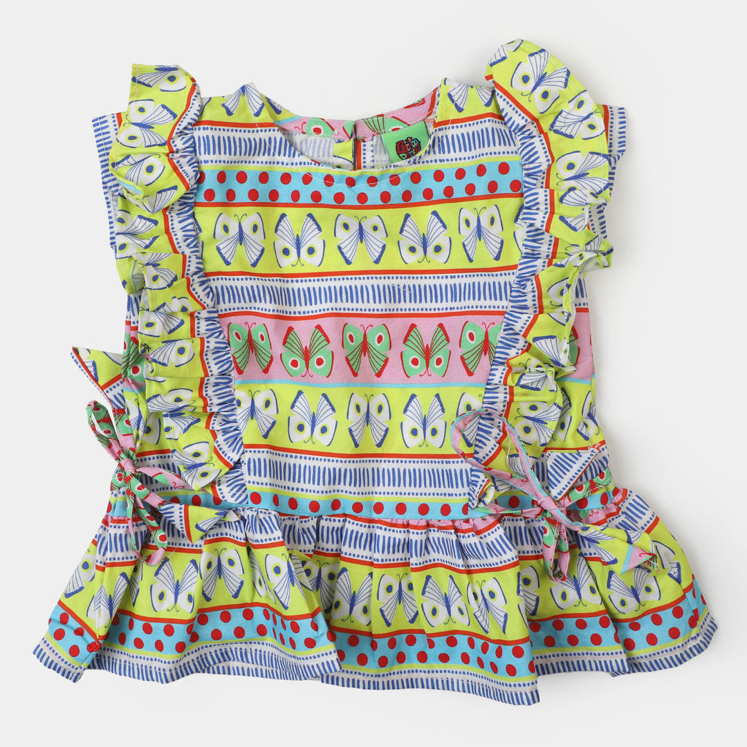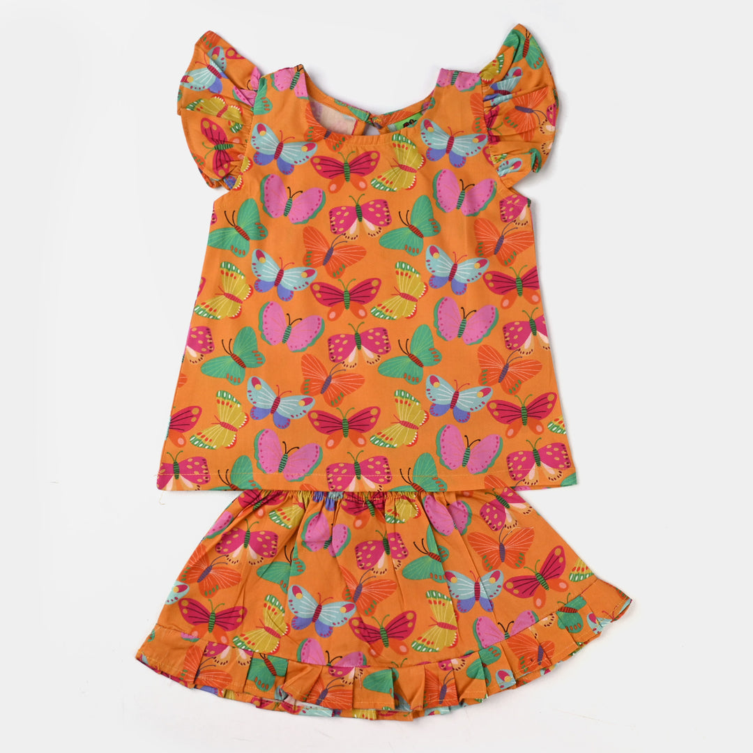Infant Girls Cotton Poplin 2PCs Suit Butterfly-ORANGE