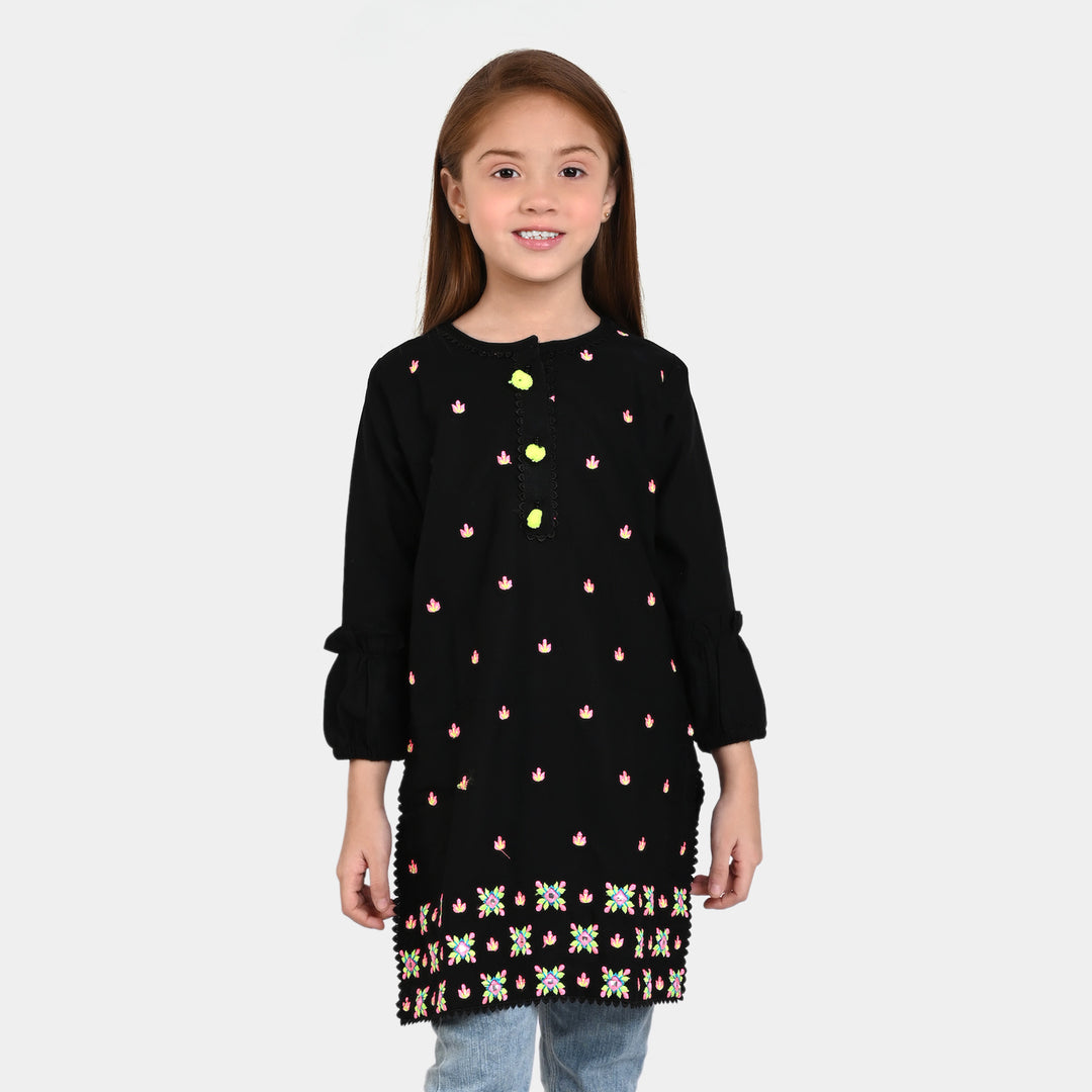 Girls Cotton Embroidered Kurti Black Beauty-BLACK