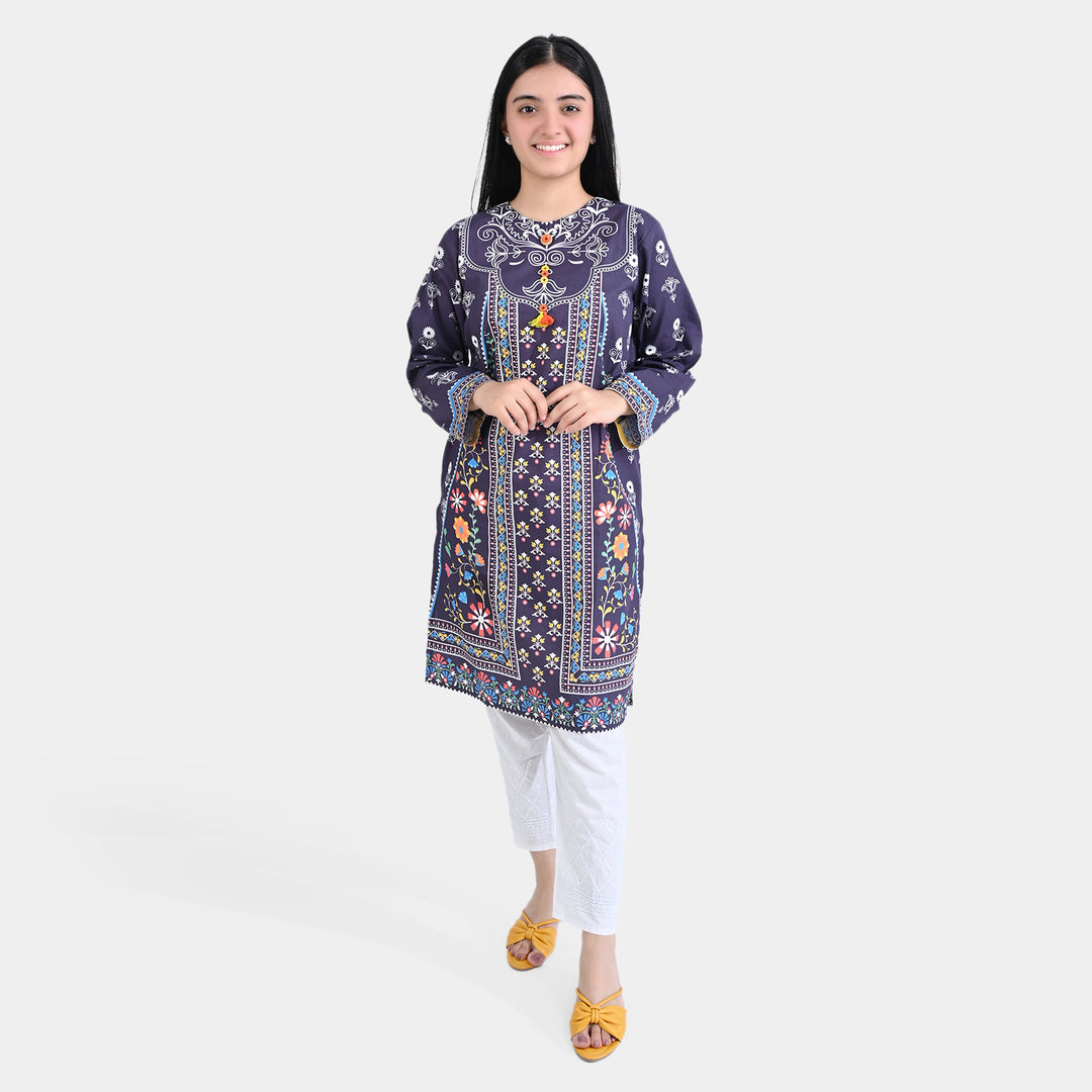 Teens Girls Cotton Poplin Printed Kurti Bloch frok-Purple