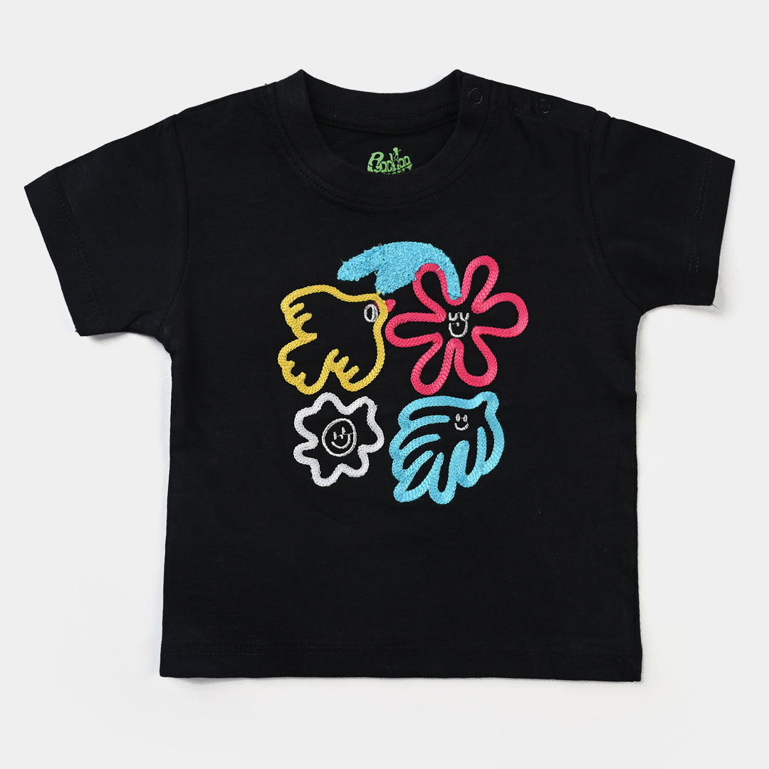Infant Girls Cotton Jersey T-Shirt Birds & Leaves-Jet Black