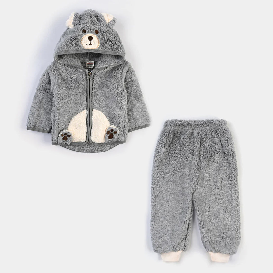 Girls Cotton Slub Emb 2PC Suit Chaman-Ceramic