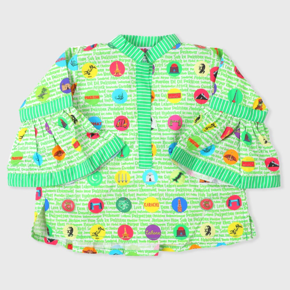 Infant Girls Digital Print Independence Kurti Stamps - Green