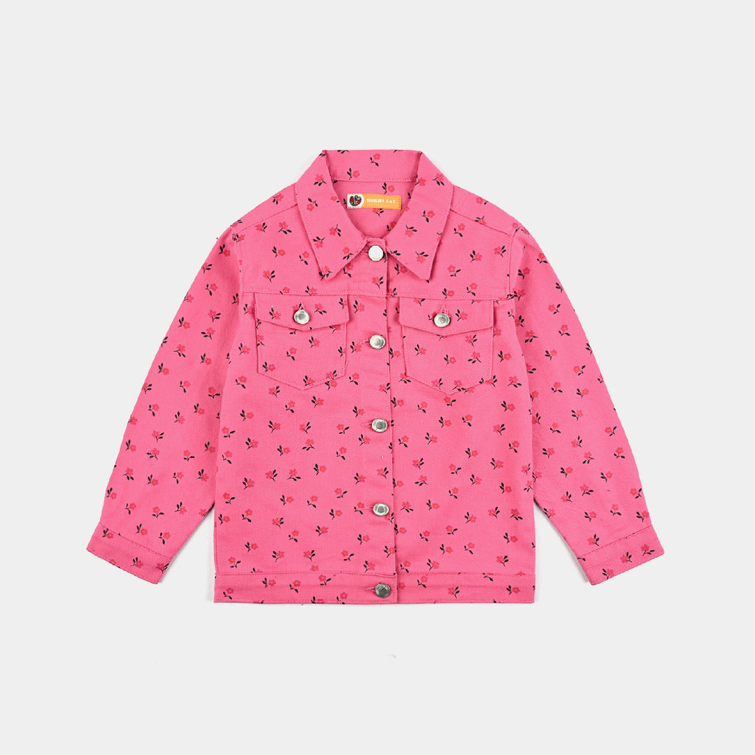 Girls Denim rigid Woven Jacket Floral-Hot Pink