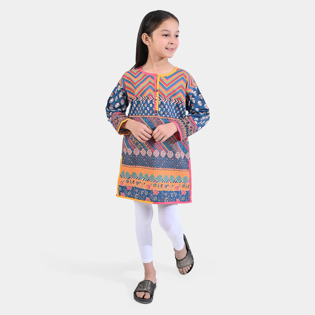 Girls Cotton Poplin Printed Kurti Blocking-Multi