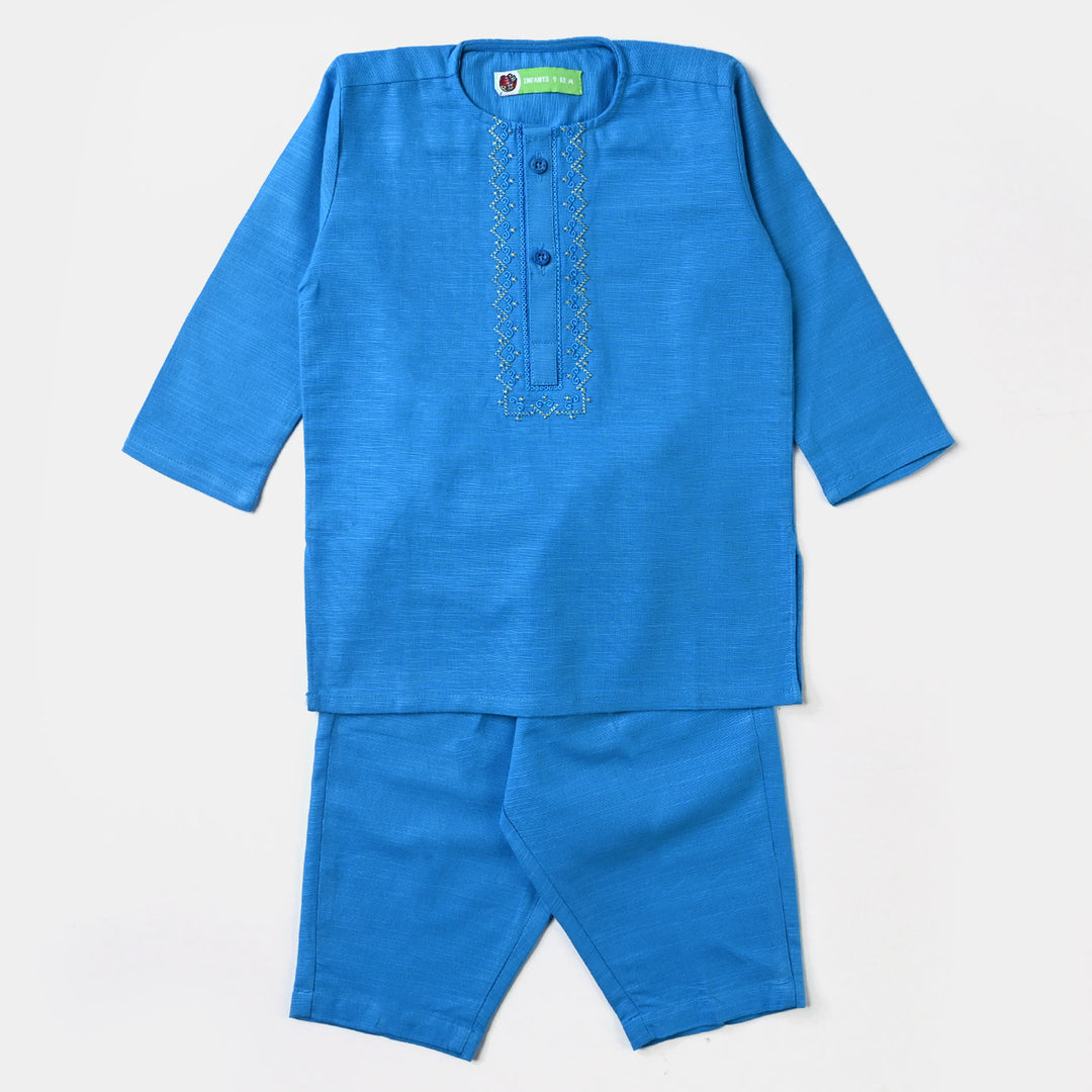 Boys Cotton Poplin Basic Kurta (Running Stitch)-Blue