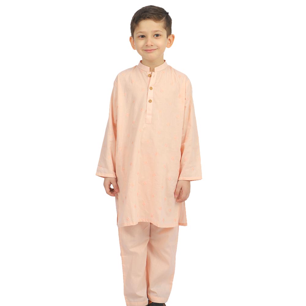 Boys Embroidered Kurta Pajama Suit Diamond - Peach