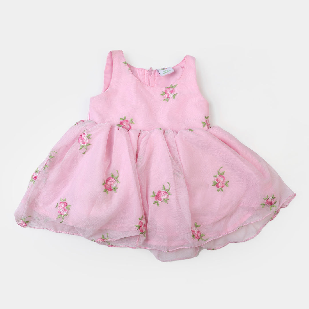 Infant Girls Net Fancy Frock Embroidered - Baby Pink