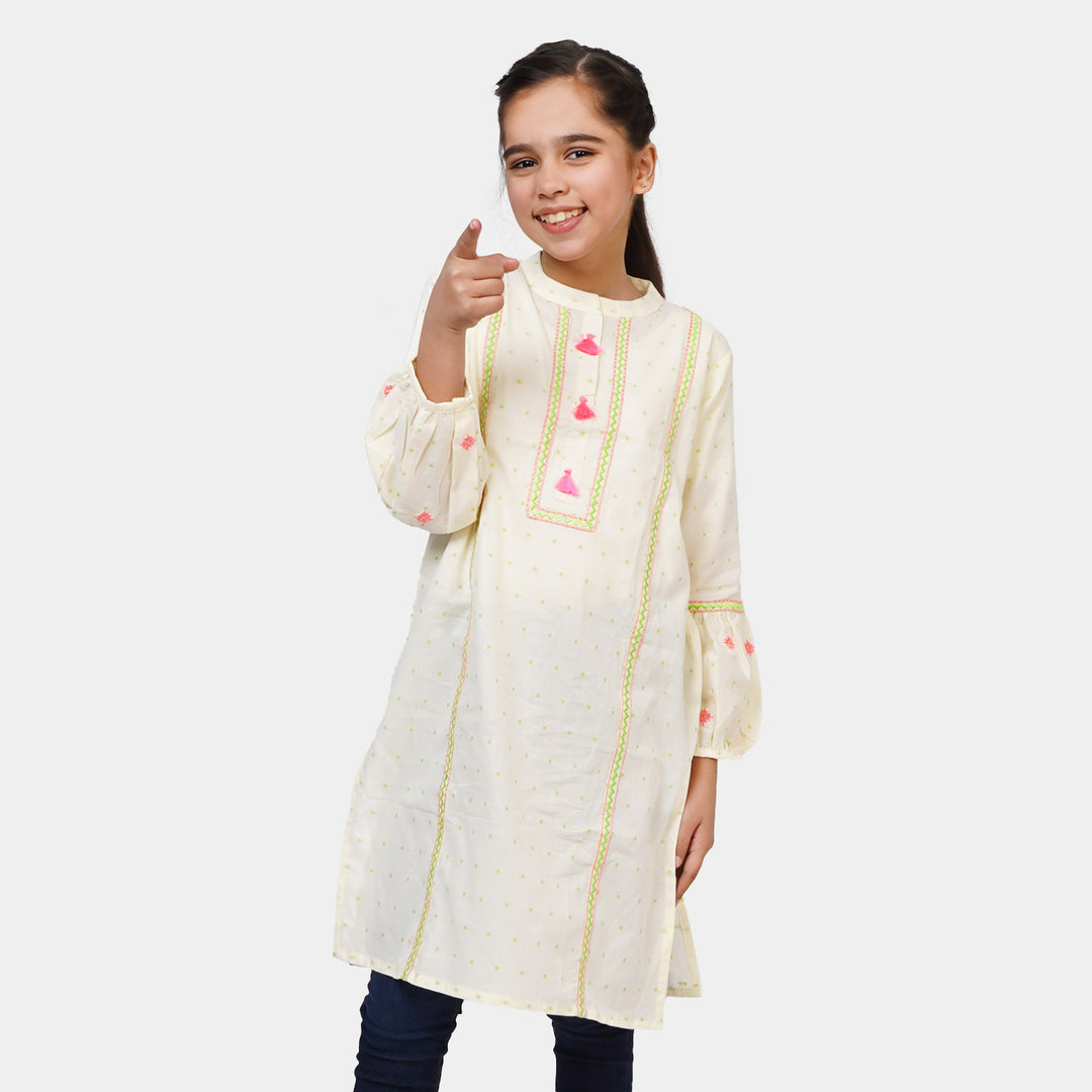 Infant Girls Cotton Embroidered Top Hello Summer - Orange