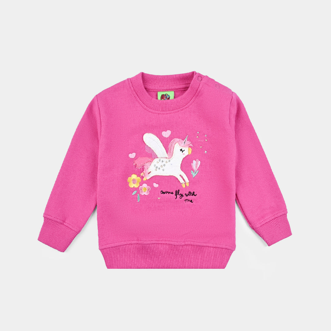Infant Girls Cotton Terry Sweatshirt Fly With Me-Pink