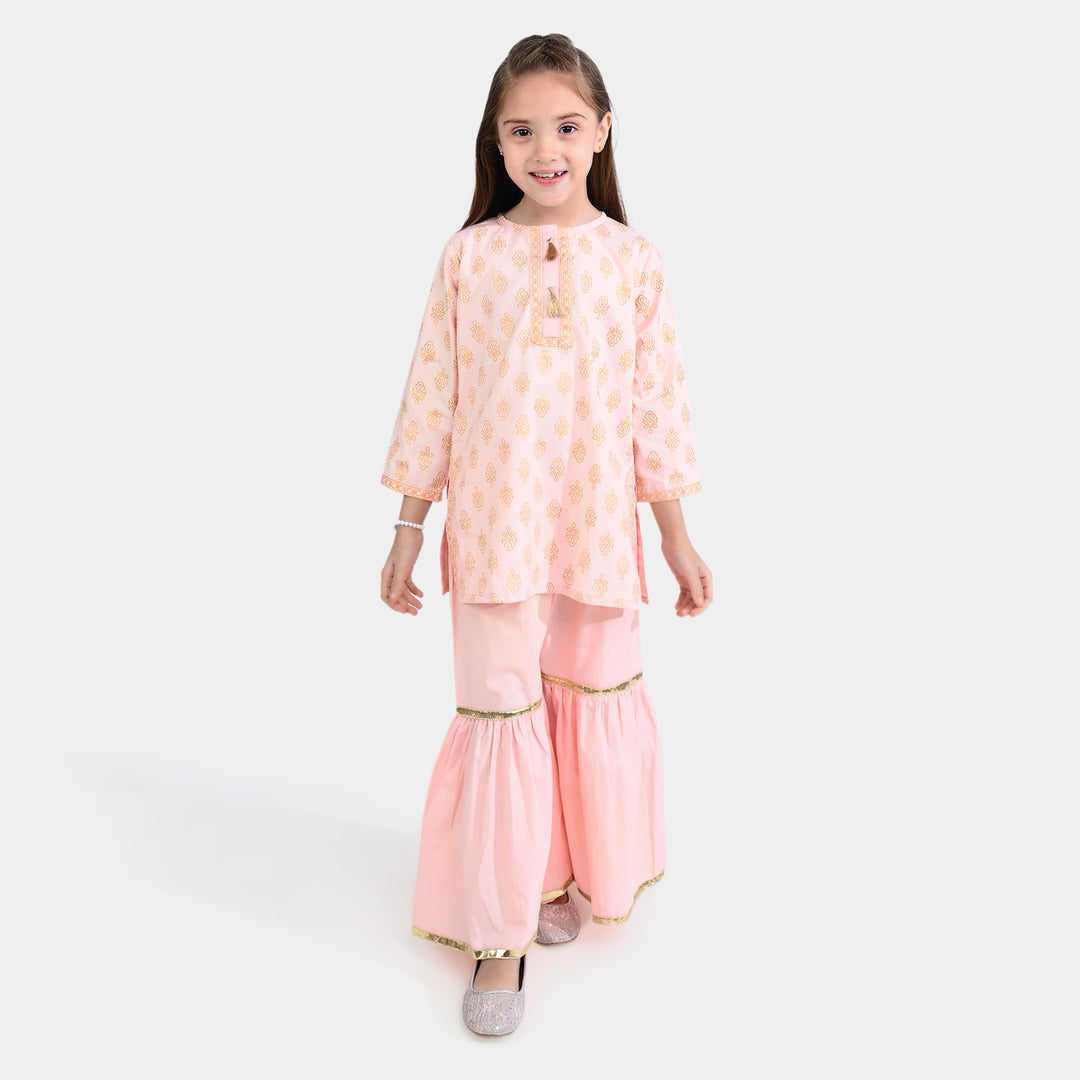 Girls Cotton Poplin 2 PCs Suit Kiran -Bright Pink
