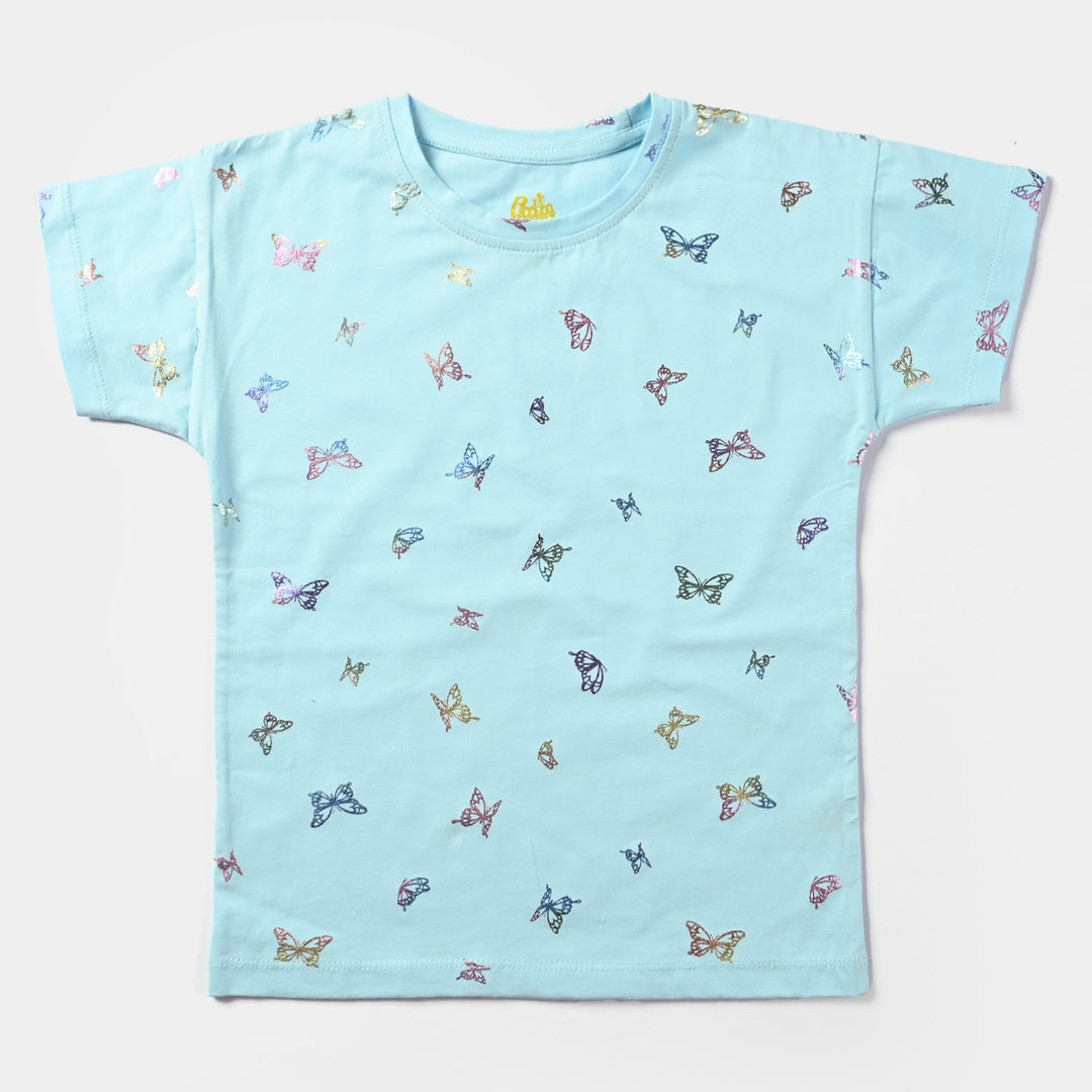 Girls Cotton Jersey T-Shirt H/S Butterfly-T-Turquoise