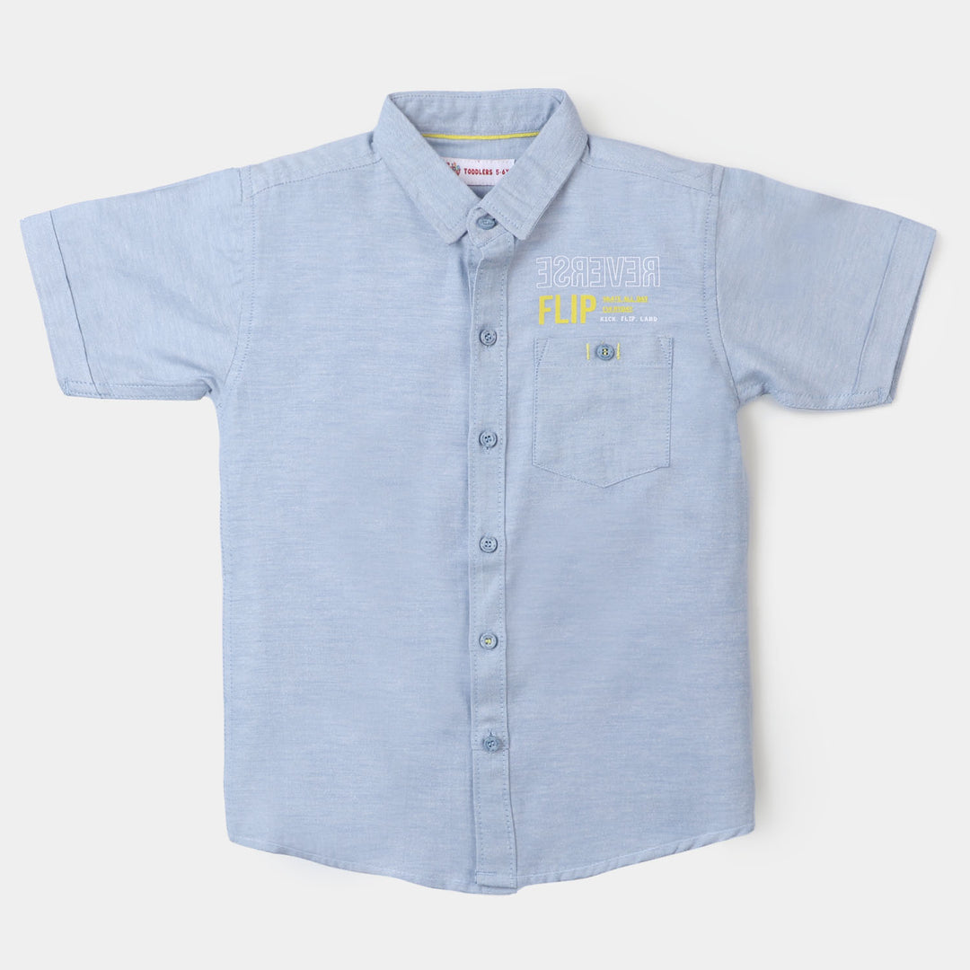 Boys Oxford Casual Shirt Reverse Flip - Light Blue