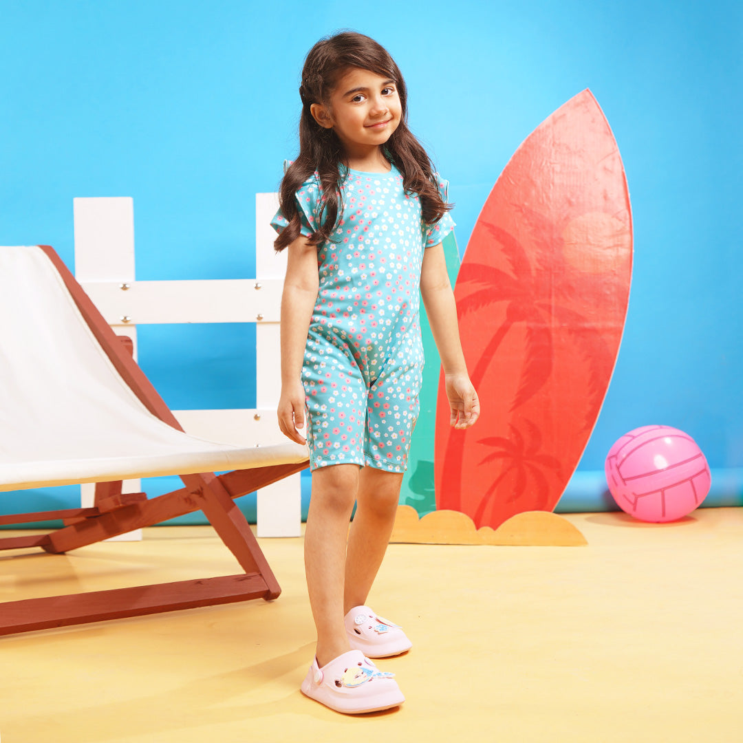 Girls Nylon Swimming Jumper Flowers-Sky Blue