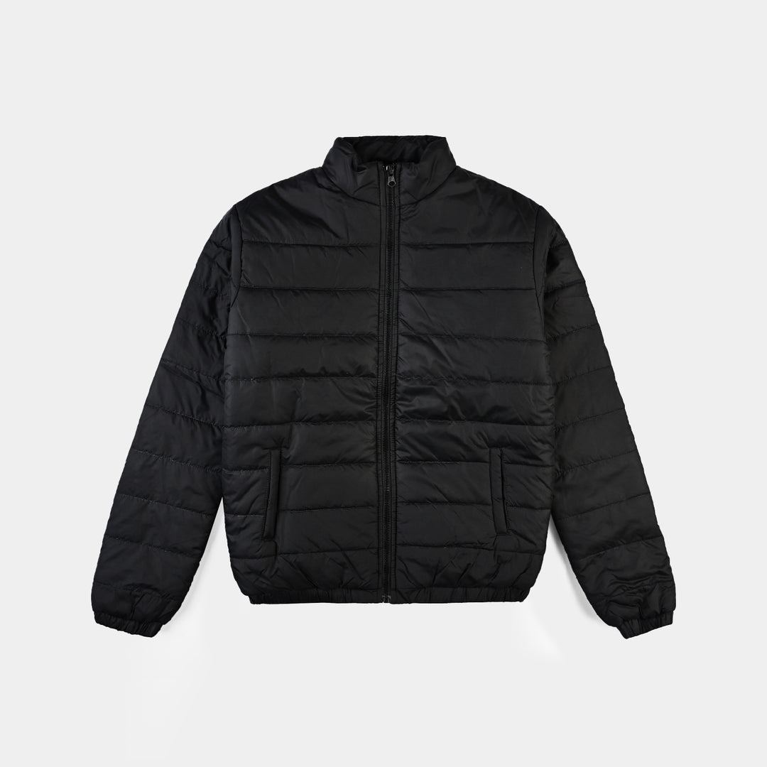 Teens Unisex Mix taffeta Mock Neck Puffer Jacket-BLACK