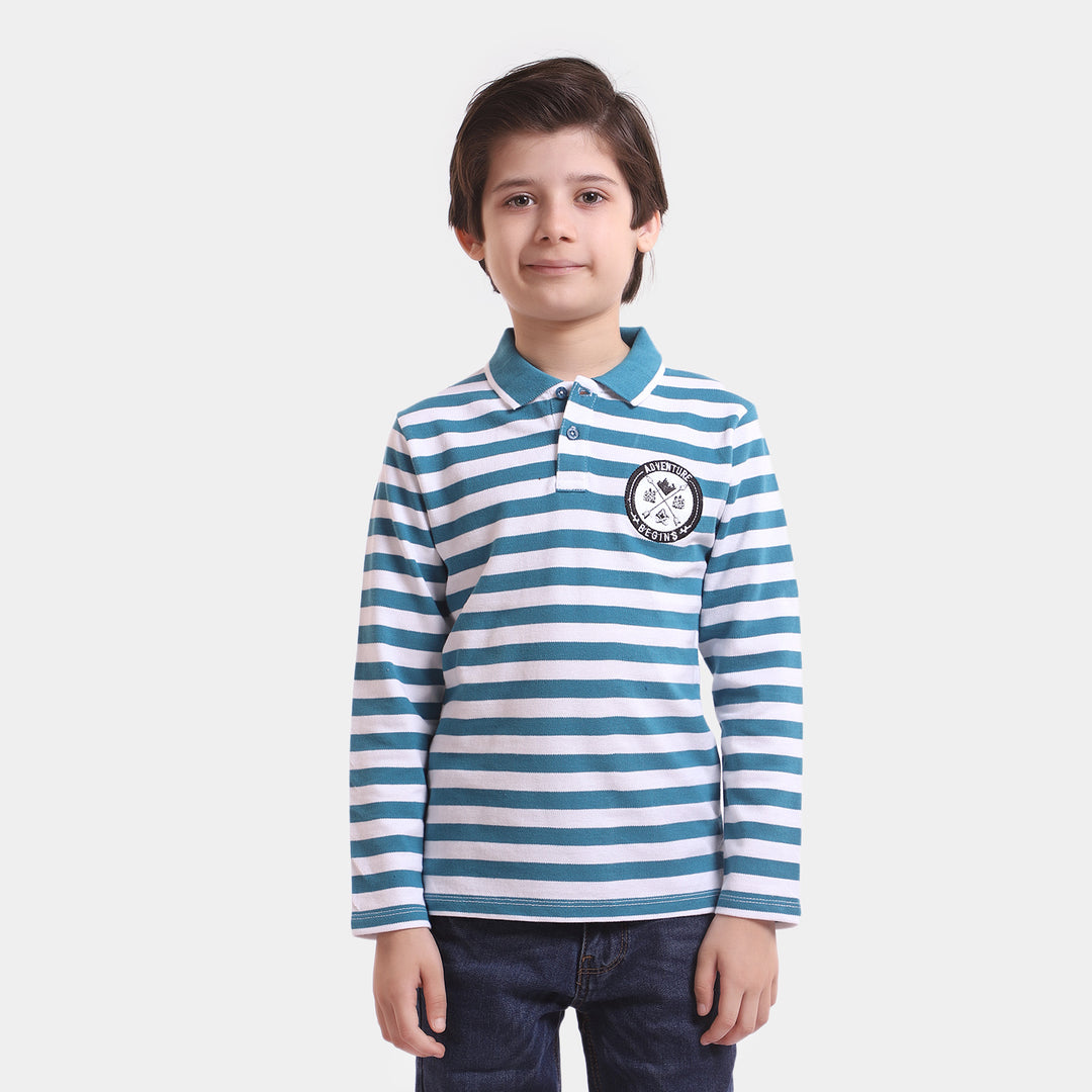 Boys Cotton Polo T-Shirt Adventure - Blue/White