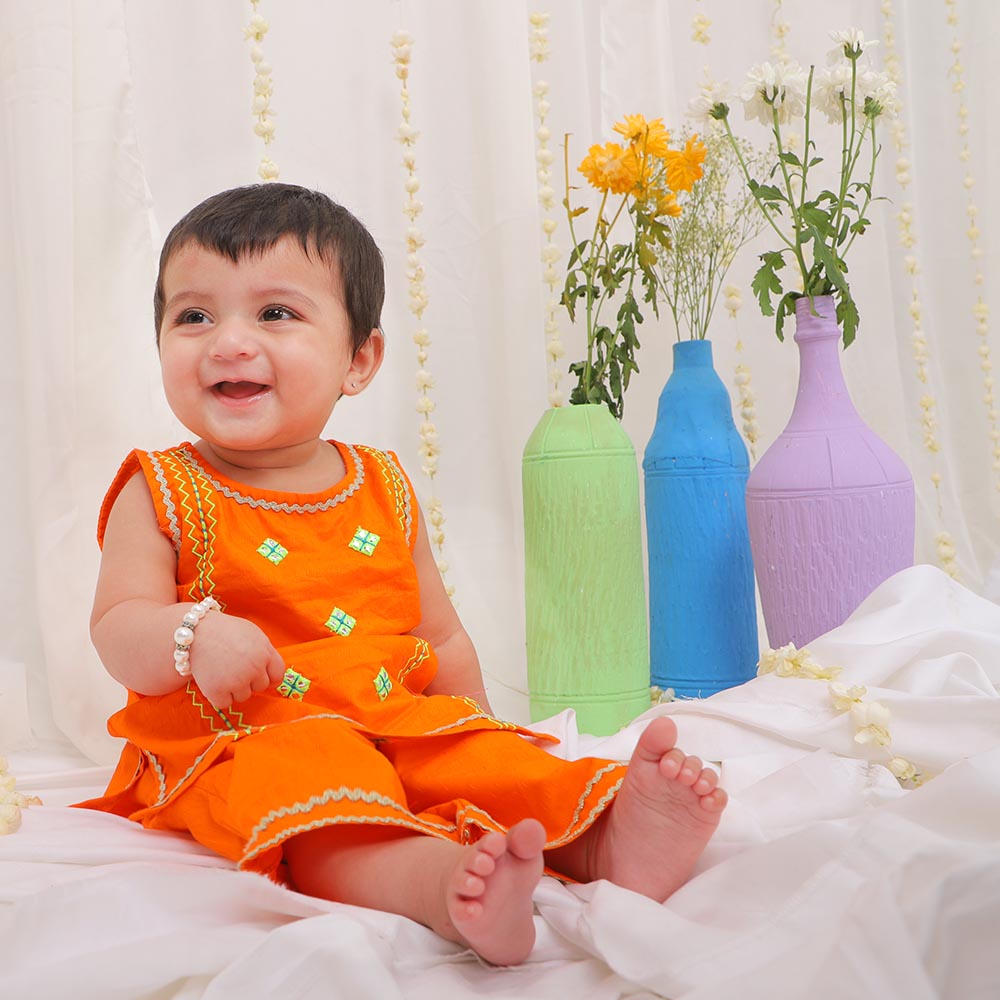Infant Girls Embroidered Kurti Delight Cotton - Pink