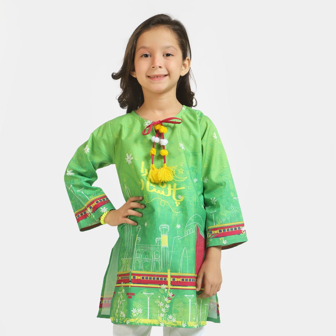 Girls Cotton Slub EMB Kurti Butterflies-Navy Blue