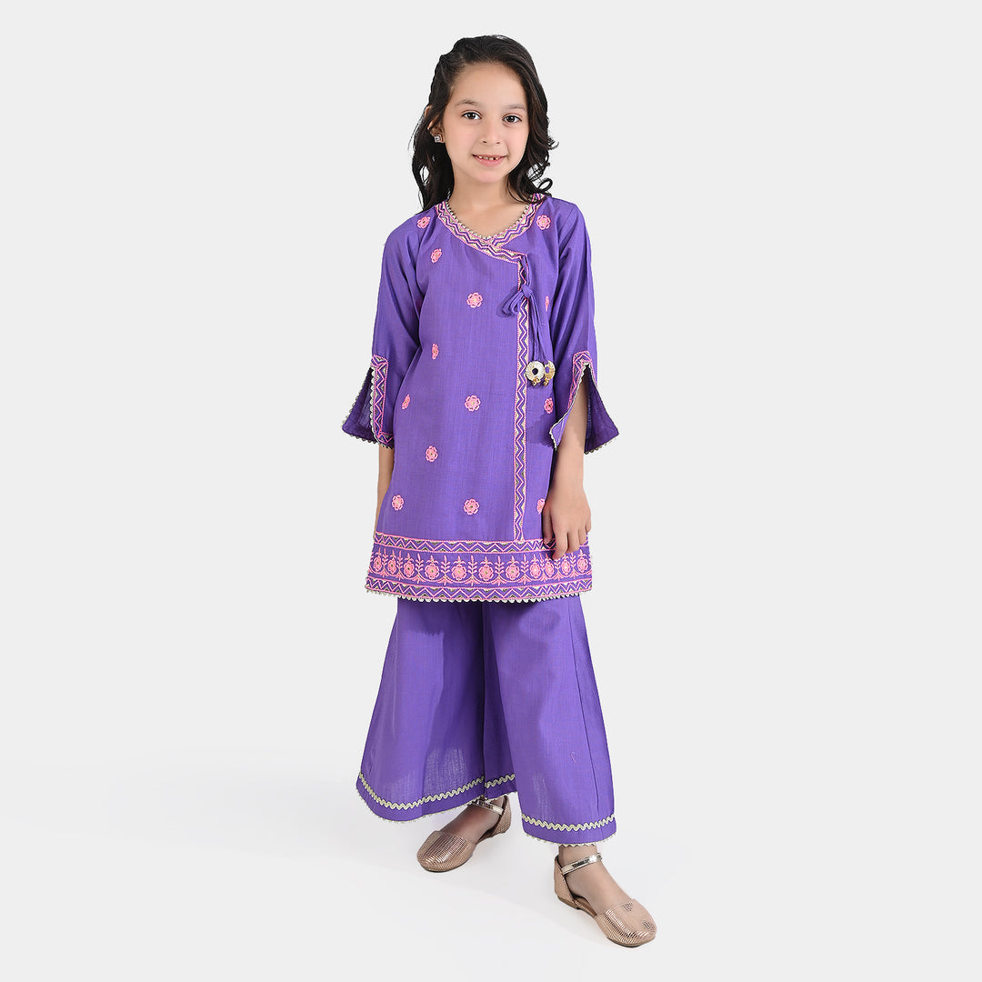Girls Cotton Slub EMB 2PC Suit Dil Kush-Purple