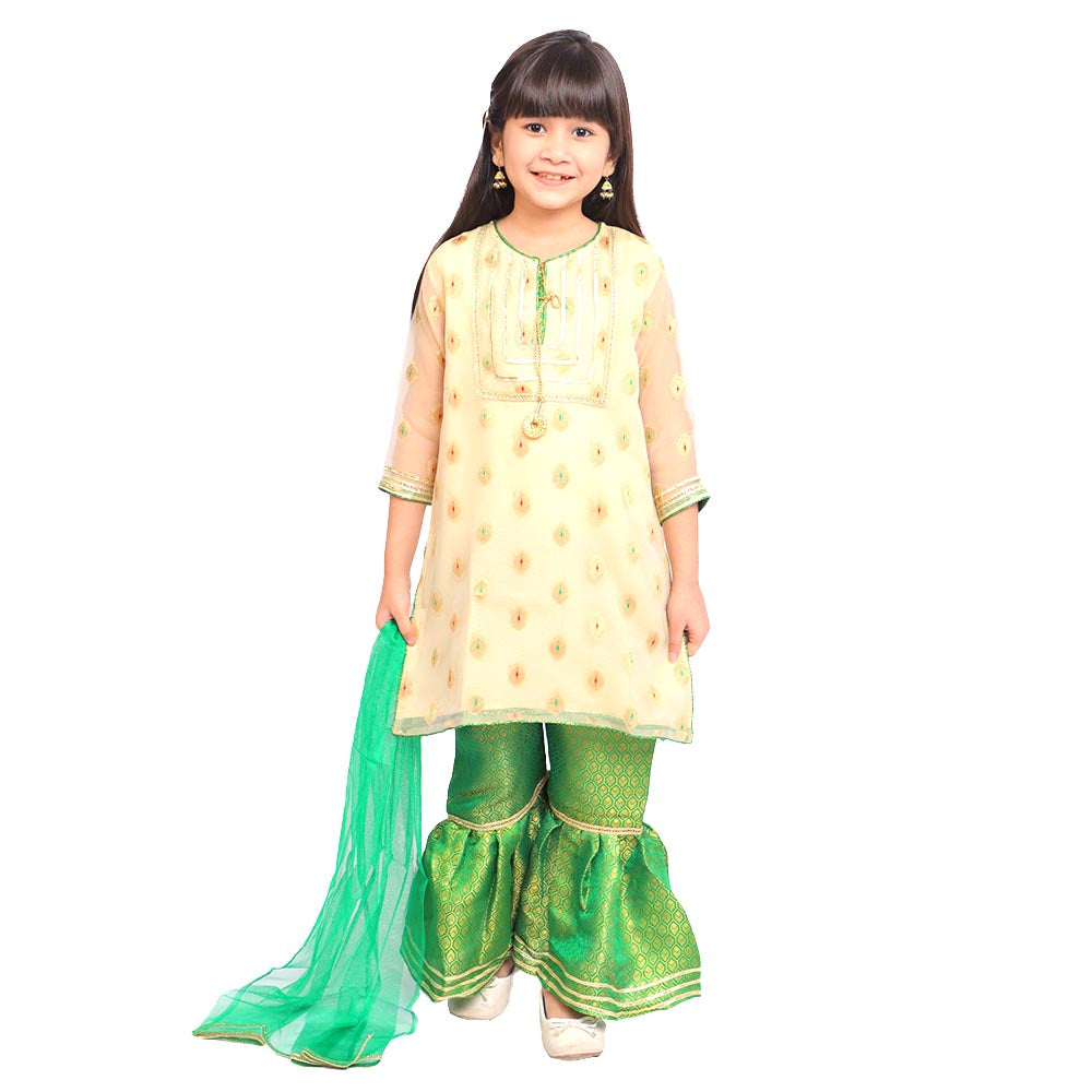 Fancy Gharara Glow 3 PCs Suit For Girls - Green