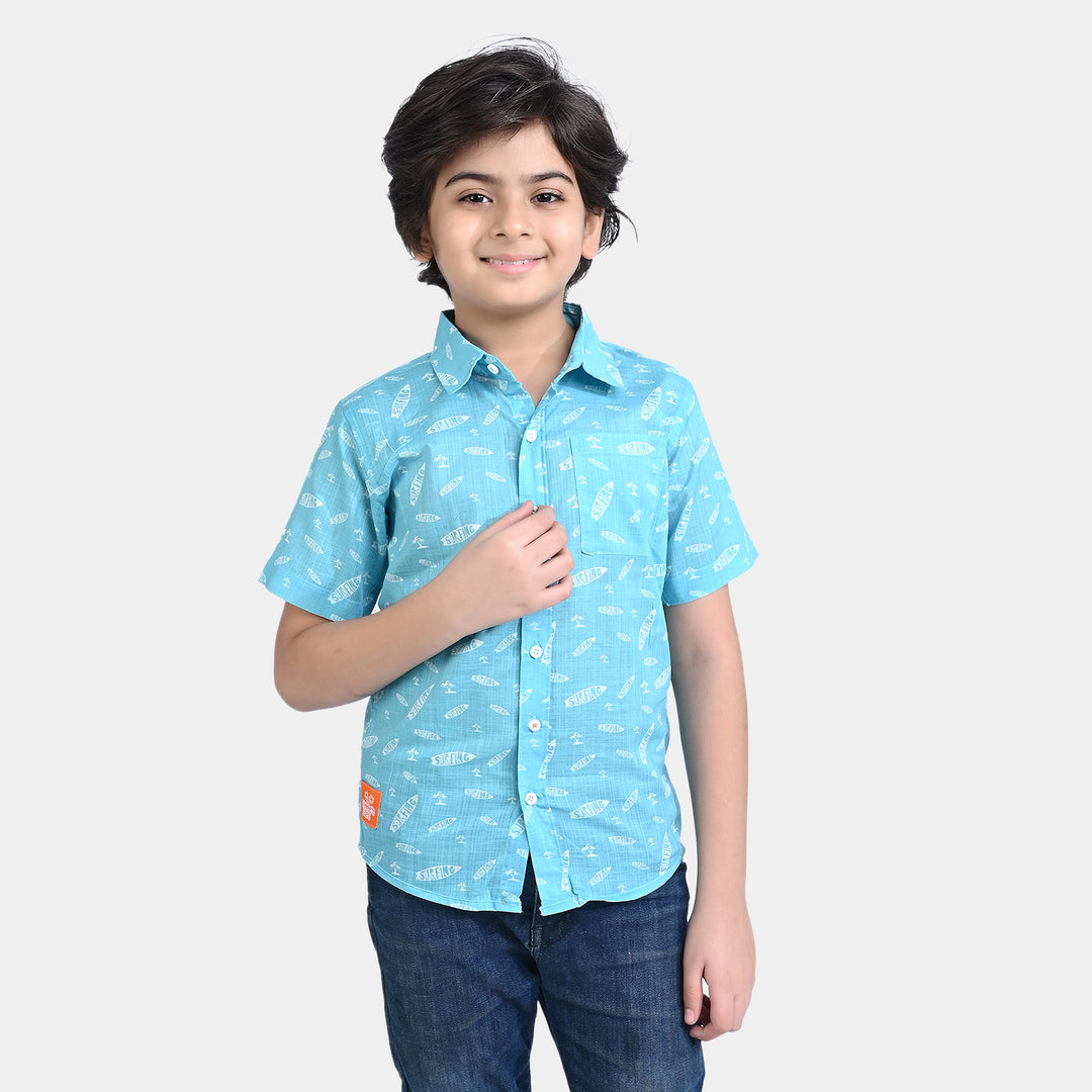 Boys Cotton Slub Casual Shirt H/S (Surfing)-L/BLUE