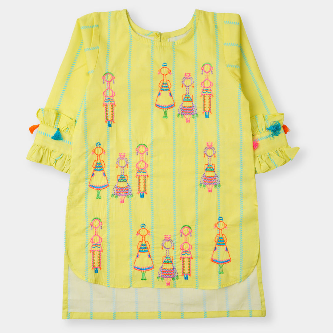 Boys Yarn Dyed Basic Kurta (Band Collar)-L.Yellow