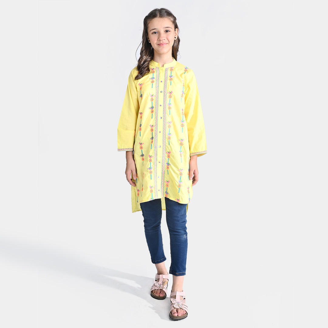 Girls Cotton Slub EMB Kurti Rang Reza-B.Yellow