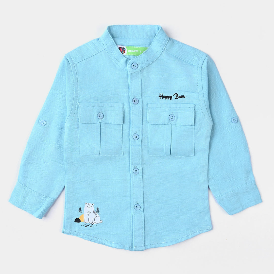 Infant Boys Cotton Slub Casual Shirt Oh My Bear-SKY BLUE
