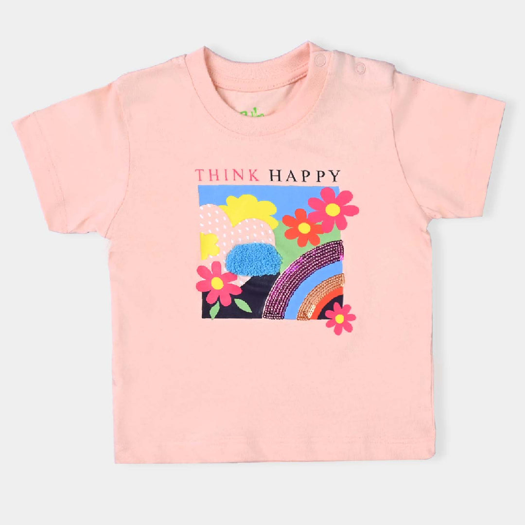 Infant Girls Cotton Jersey T-Shirt Think Happy-Pink
