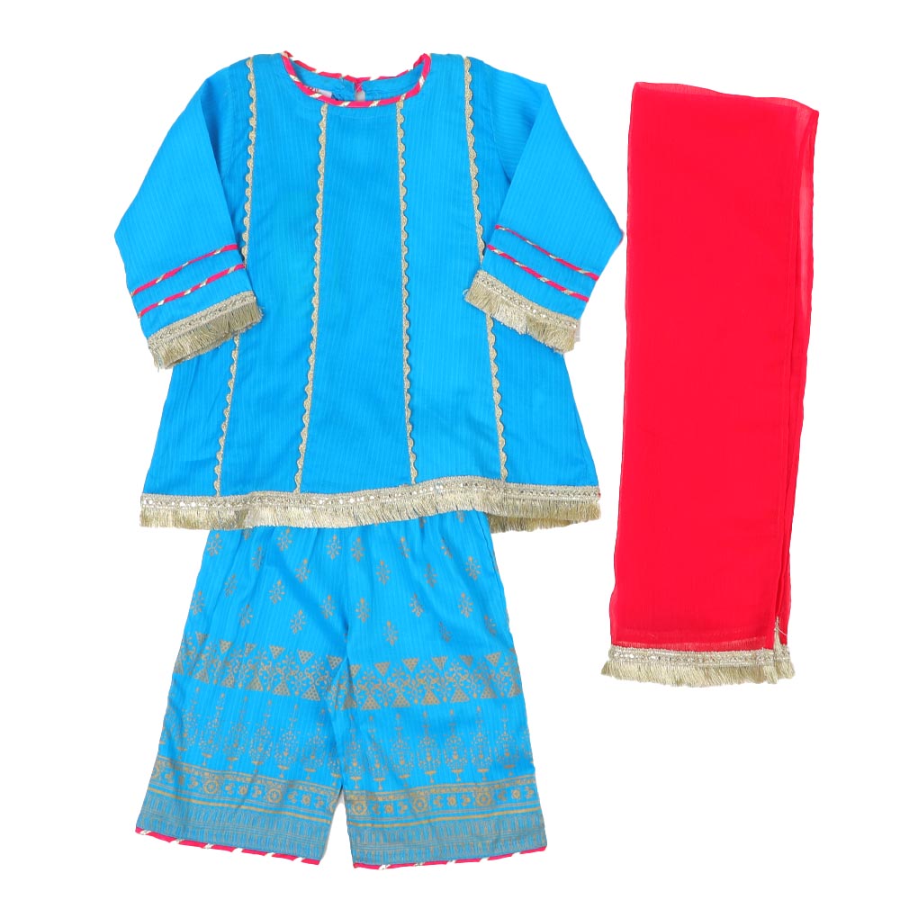 Infant Girls 3Pcs Fancy Ethnic Desire - Turquoise