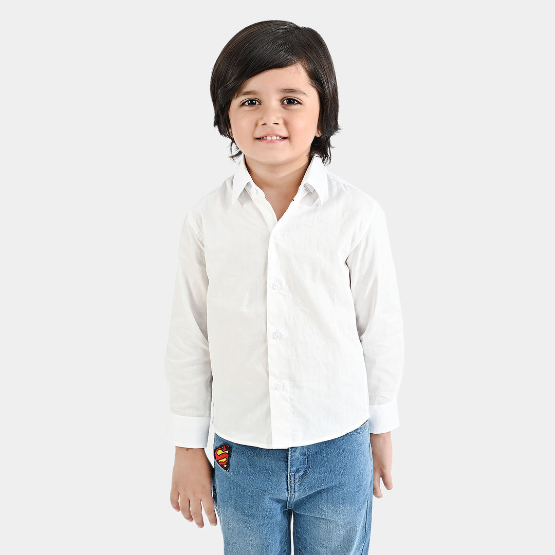 Boys Oxford Full Sleeves Formal Shirt -White