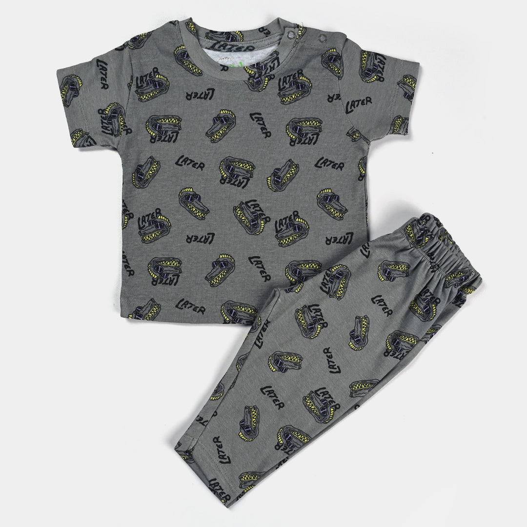 Infant Boys Jersey Knitted Night Suit Crocodile | D. Grey