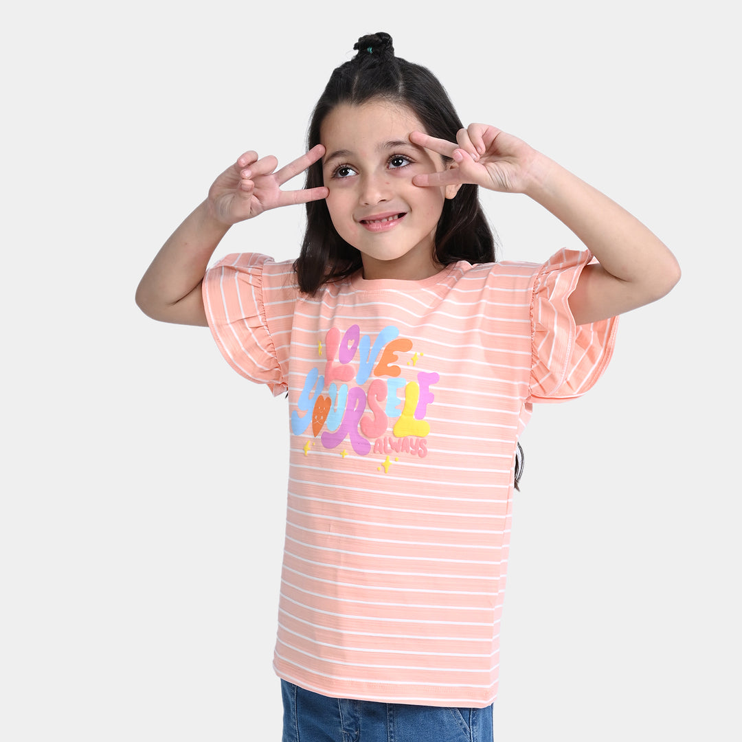 Girls Jacquard T-Shirt H/S Love Yourself-Peach